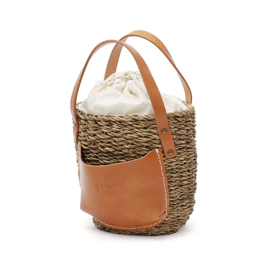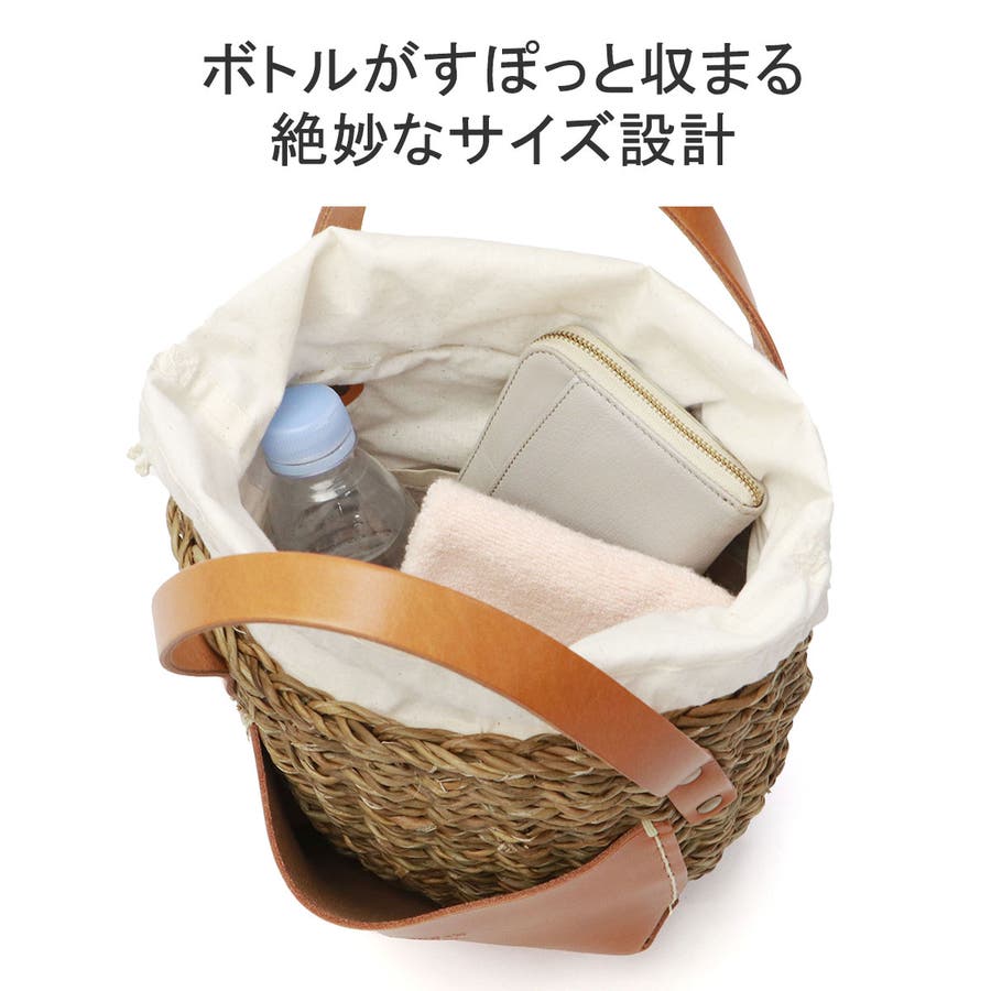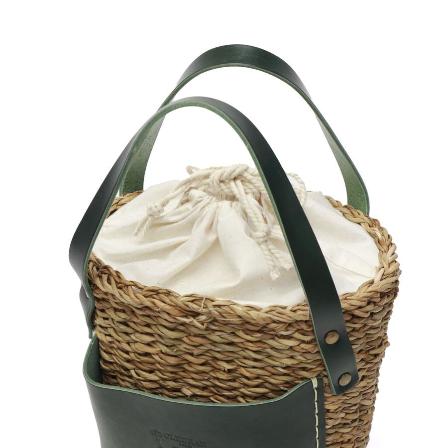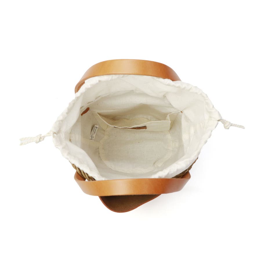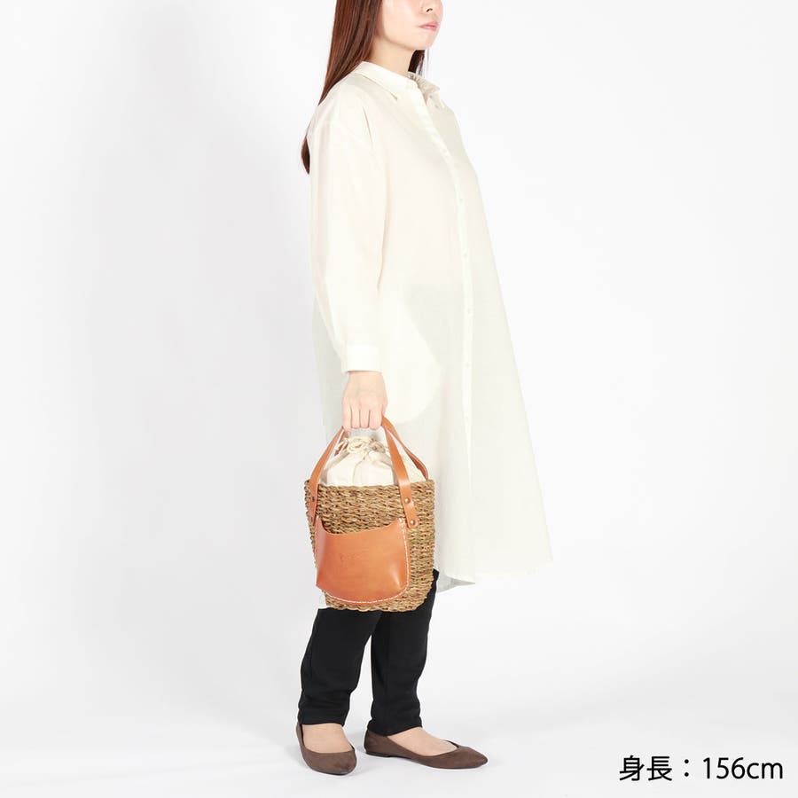 コロンと丸みを帯びた愛らしいフォルムに、大きなレザーポケットを合わせたカゴバッグ。バングラデシュの温地帯に生える水草・ホグラを使用し、職人が一つ一つ丁寧に編み込んでいます。ナチュラルなカゴにレザーパーツを合わせることで、上品さをプラス。口元から覗く巾着は、中に入れ込んですっきりと持ってもOK。爽やかさと大人可愛さを兼備したアイテムに仕上がっています。