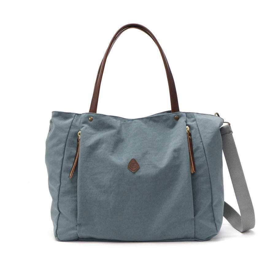 軽くて薄いナイロンで仕立て、バッグ自体の重さを気にせず快適に持てる『LALI』の2WAYトートバッグ。マットな質感のレザーパーツとアンティークゴールド金具を随所にあしらう事でカジュアルダウンを防ぎ、品の良さを感じさせてくれる一品に仕上がってます。本体はA4サイズが収まるメインスペースに、小物類もすっきり収納できるポケットを備え、実用的で使いやすく普段使いはもちろん旅行のお供にもおすすめのアイテムです。