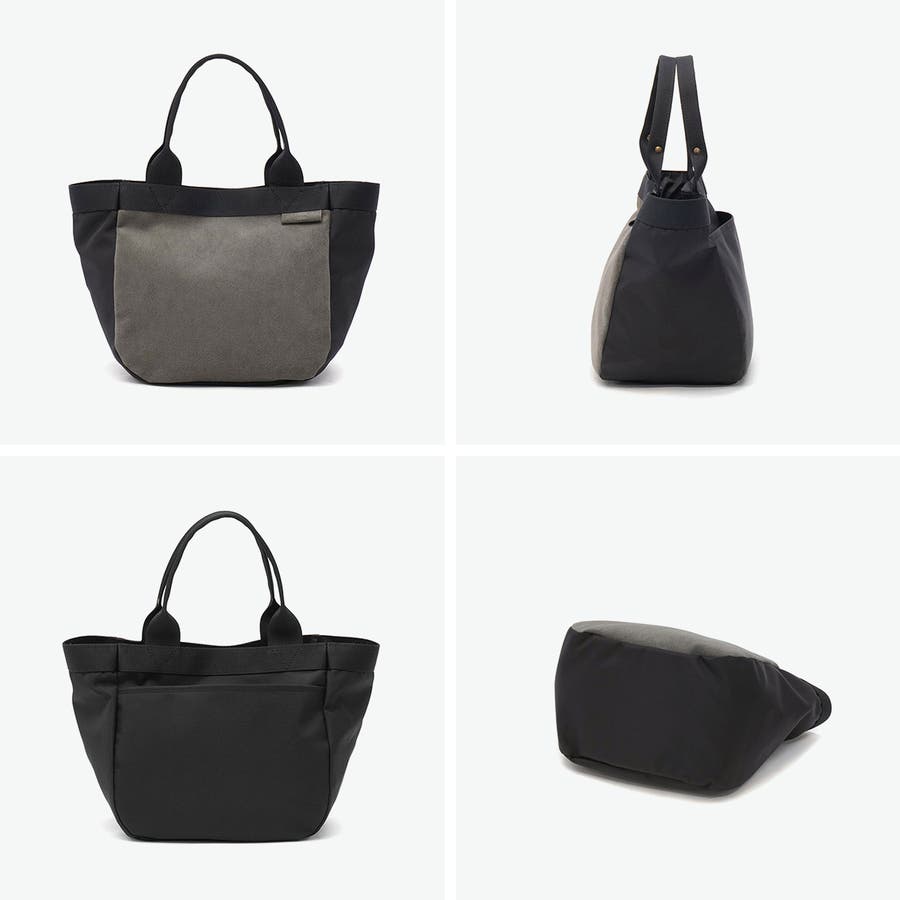 異素材の組み合わせが目を引く、ナイロン×スエード調コンビのトートバッグ。前面には上品なスエード調素材を使用し、柔らかな質感が落ち着いた印象を与えます。コンパクトながらしっかりとしたマチ幅と多数のポケットを備え、見た目以上の収納力を実現。上品さと実用性を兼ね備えた、デイリー使いにぴったりのアイテムです。
