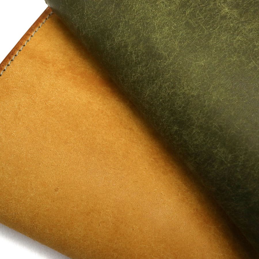 和紙のようなサラッとした質感と、鮮やかな色味が特徴の「SLATE PUEBLO」シリーズの二つ折り財布。内側と外側で色合いが異なるので、経年変化によってそれぞれ違う表情を楽しめます。スマートなルックスながら、見た目以上の収納力を備えており、実用性の高い設計となっています。