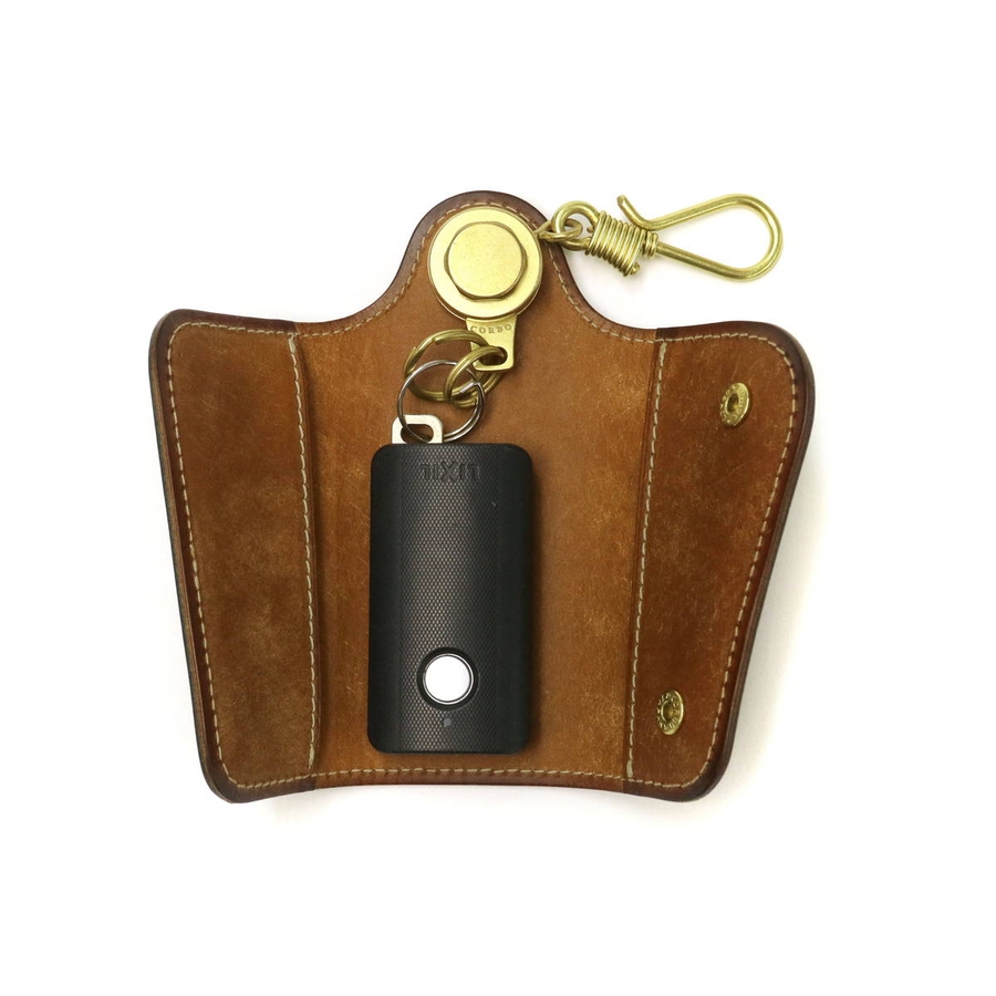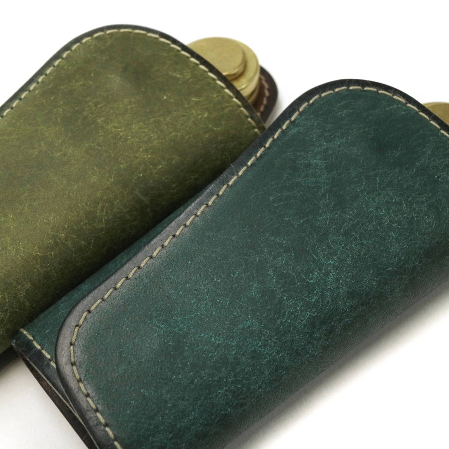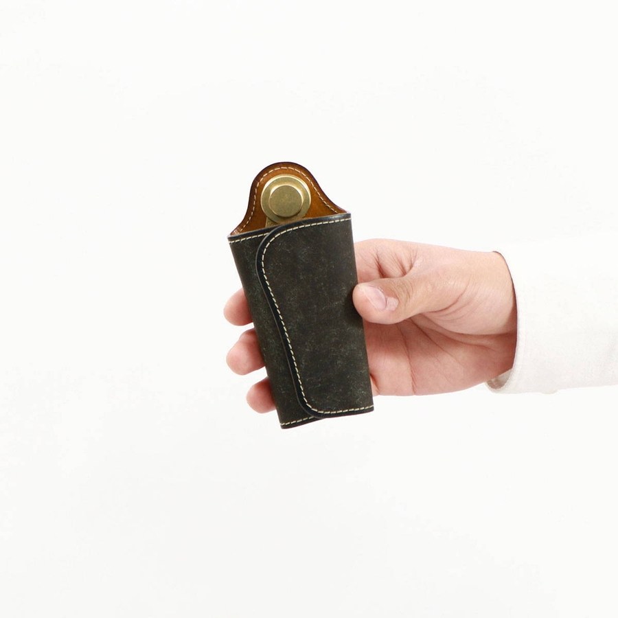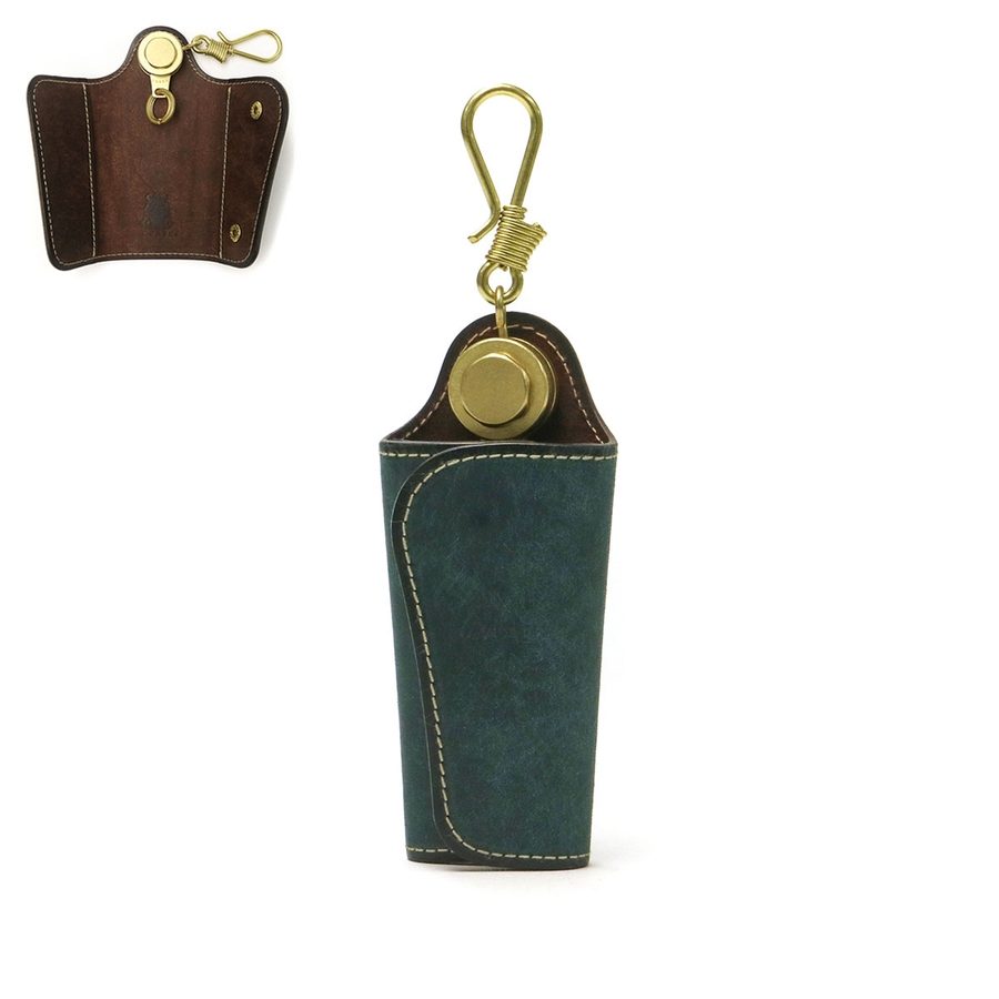 和紙のようなサラッとした質感と、鮮やかな色味が特徴の「SLATE PUEBLO」シリーズのスマートキーケースです。手に収まりやすい、着物を着た人のようなフォルムが存在感を感じさせる独特のデザイン。真鍮削り出し金具とプエブロレザーのコントラストが独特の雰囲気を作り上げます。