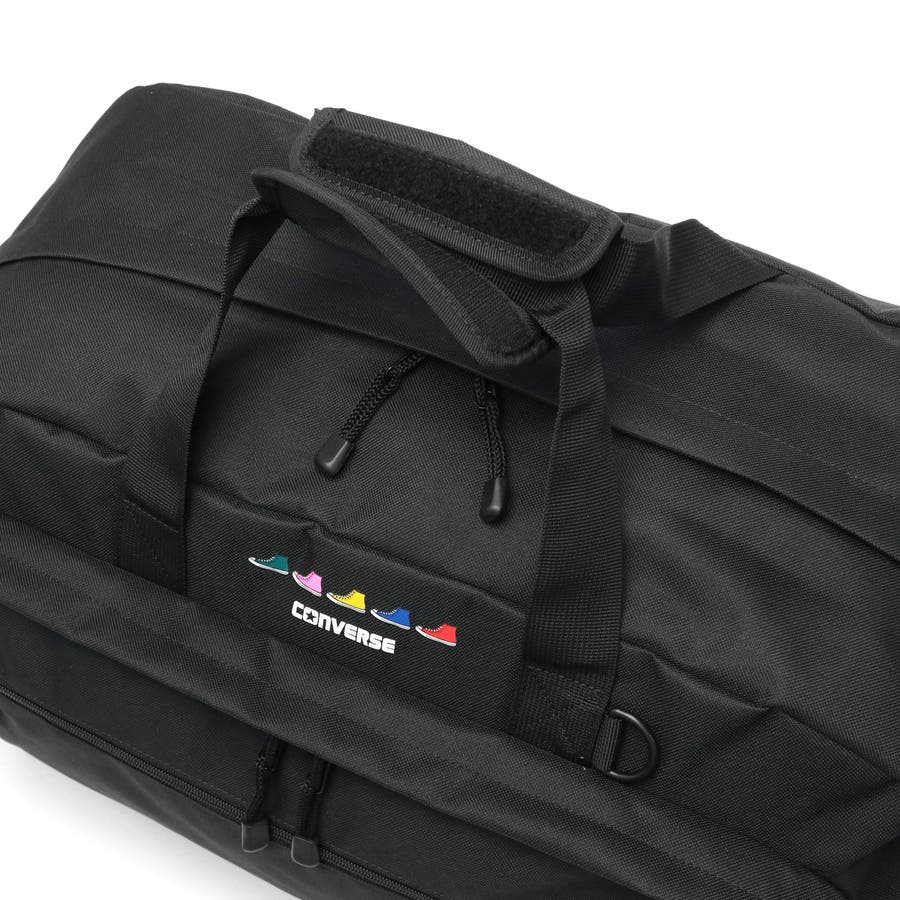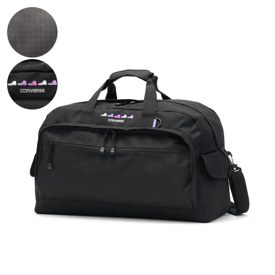 スニーカーのロゴプリントをあしらった2WAYボストンバッグ。レジャーや旅行、合宿、スポーツやジムなど、様々なシーンで活躍する大容量サイズが魅力。荷物の整理がしやすい充実したポケットを装備しており、使い勝手がよいアイテムです。