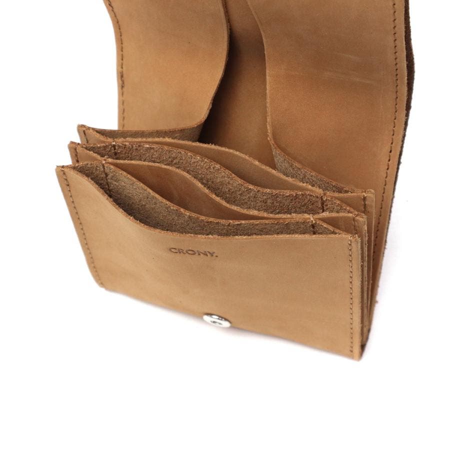 使う程にツヤが増し、深い色味へと変わっていく経年変化と、キメ細かく滑らかな肌触りの良さも楽しんでいただけるヌバックレザーシリーズ『TATUM』のミドルウォレットです。収納力もありながらそれでいてスマート。コインポケットは大きく開いて小銭が見やすい仕様になっています。お会計時のさりげないオシャレを楽しめるアイテムです。