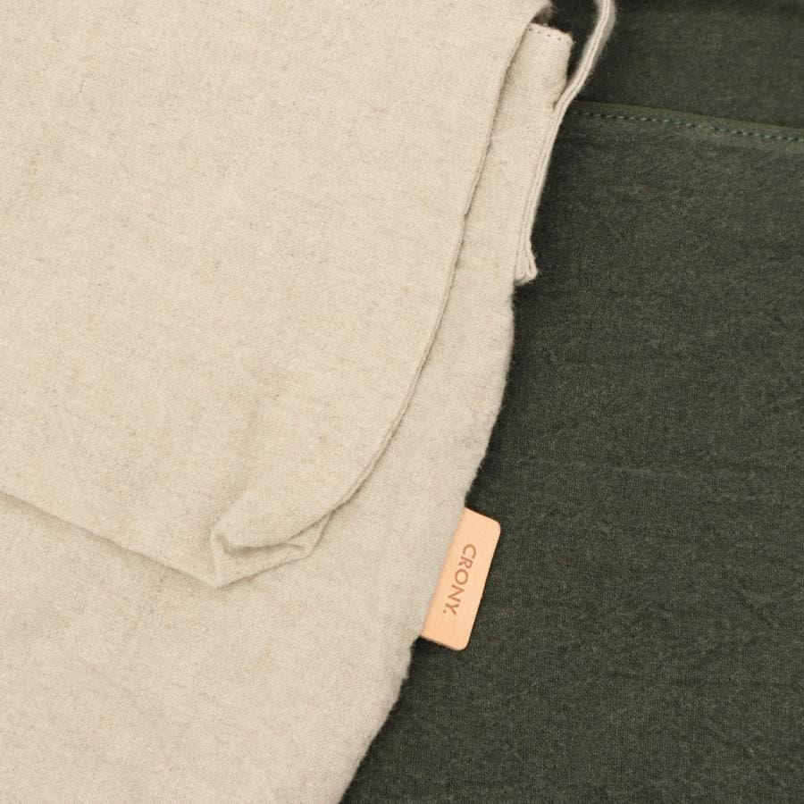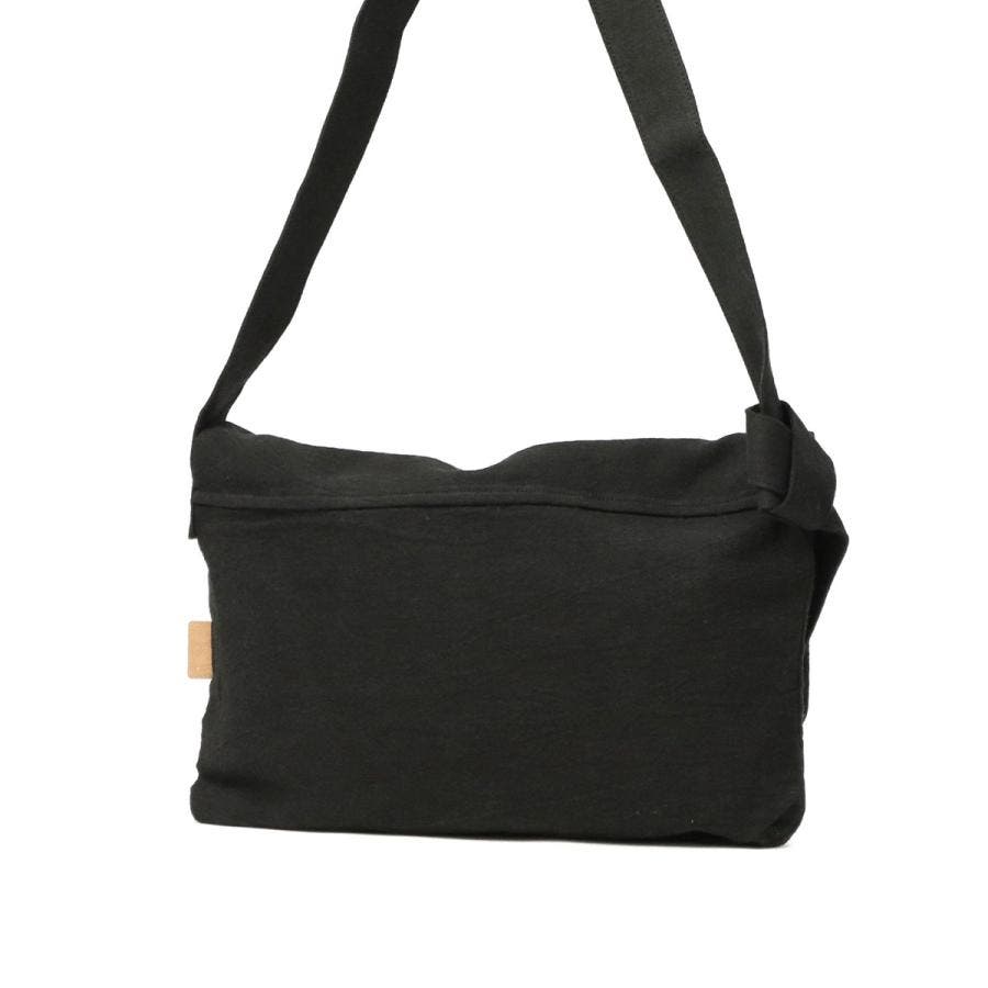 リネンとウールの混紡糸を使用した『HYBRID LINEN』シリーズのフラップ付きのショルダーバッグMサイズ。金具は使用せず、ショルダーの長さは結び目を変えることで調節が可能。シンプルなデザインでファッションの邪魔をしない万能タイプのアイテムで男性女性関係なく使用していただけます。ナチュラルでこだわり抜いた素材感をお楽しみください。