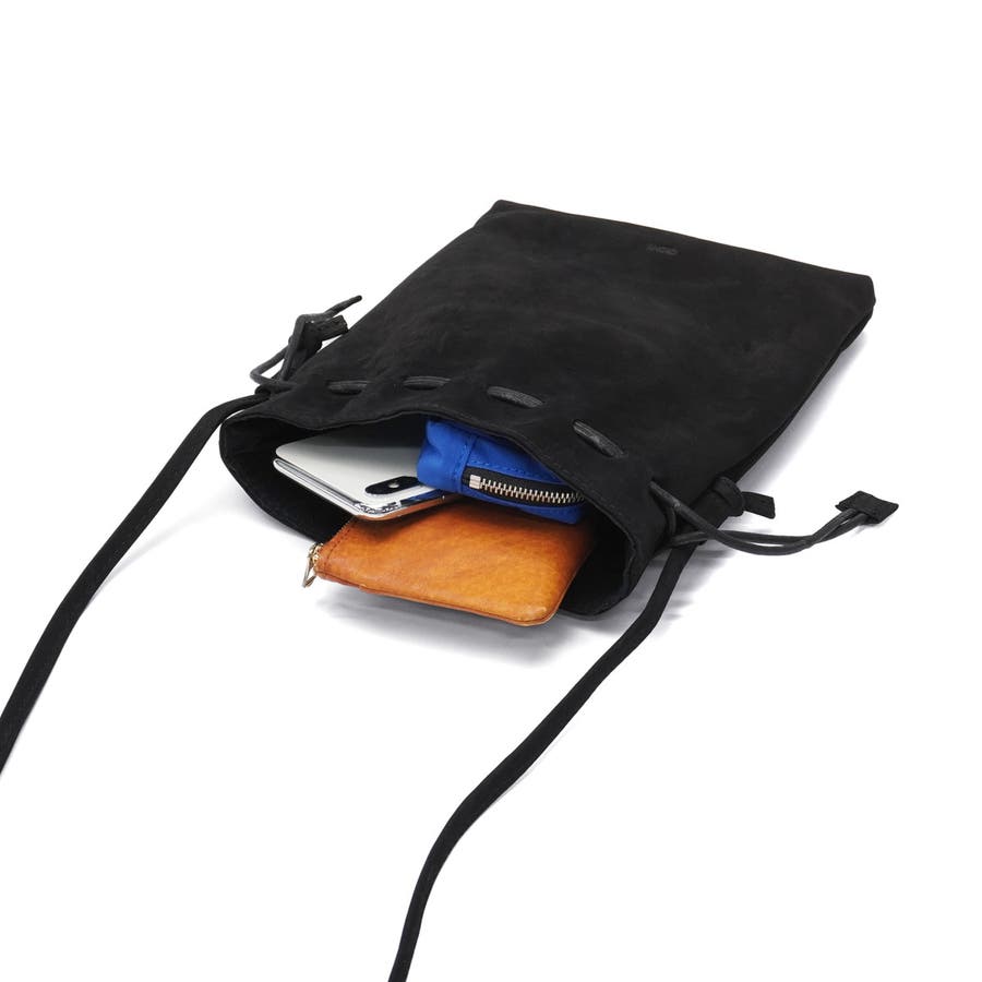 使う程にツヤが増し、深い色味へと変わっていく経年変化と、キメ細かく滑らかな肌触りの良さも楽しんでいただけるヌバックレザーシリーズ『TATUM』。こちらは必需品の持ち運びにちょうど良いコンパクトサイズのショルダーバッグです。上部のコードを引っ張ると巾着バッグとしても使え、そのままの状態でもデザイン性が高く様々なファッションに合わせやすいのがポイント。洗練されたデザインはプレゼントにもおすすめです。