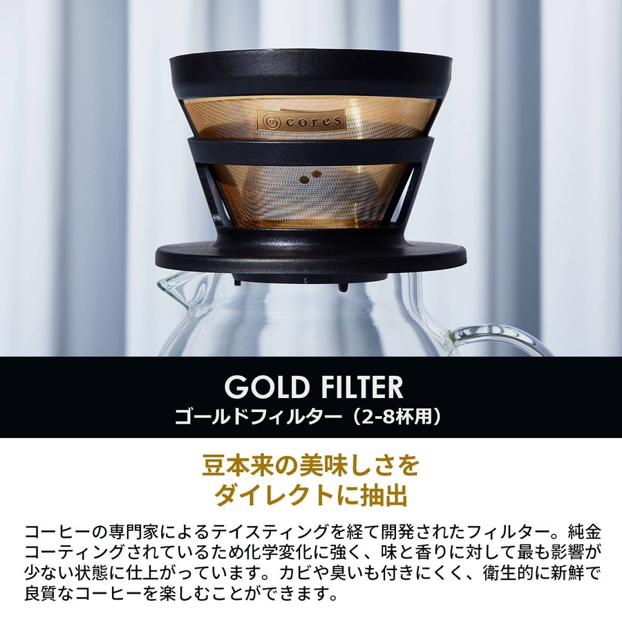 コーヒーの専門家によるテイスティングを経て開発されたフィルター。純金コーティングされているため化学変化に強く、味と香りに対して最も影響が少ない状態に仕上がっています。カビや臭いも付きにくく、衛生的に新鮮で良質なコーヒーを楽しむことができます。