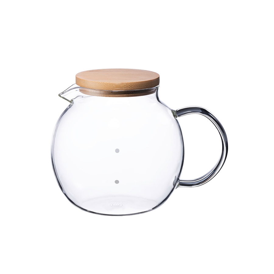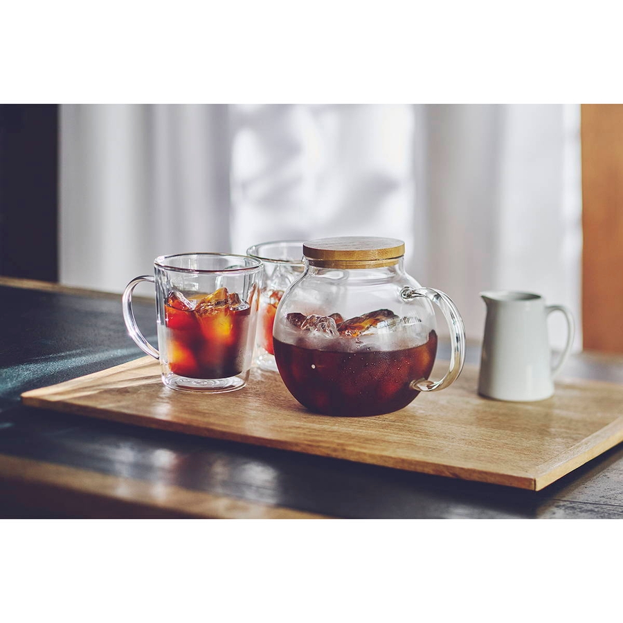 ハンドメイドのガラスとバンブーのフタを組み合わせたガラスサーバーは、温かみと清潔感のあるデザインに仕上がっています。 またフタを外した状態であれば、電子レンジ・食器洗浄機・食器乾燥機でのご使用が可能です。