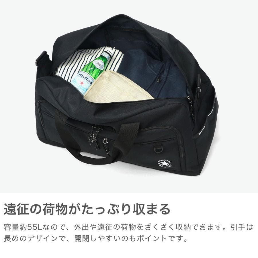 約55Lの容量を完備した、大型のボストンバッグです。付属のショルダーストラップを取り付けることで、肩掛け・斜め掛けで持つことができる2WAY仕様。シンプルなデザインで、旅行や習い事、学校での部活動など、幅広い場面で活躍します。