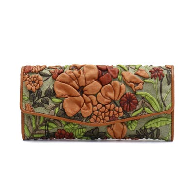 京都伝統の友禅技法と特殊加工で仕上げた立体模様の革を用い、熟練の職人により完成された『decobranche/デコブランシェ』の長財布。特徴的な立体模様はカラフルなカラーバリエーションがあり、持つだけでなく「見る」、「見せる」楽しみを与えてくれます。天然の革の質感ならではの、軽くてソフトな仕上がりも魅力です。見た目も使い心地もこだわりのアイテムとなっています。「KYOUKA」シリーズの革は友禅染めの技法を取り入れ、1色づつ染色をしています。さらに、独特な凸凹の花柄を作り出すために特殊加工を施し、1枚の革を1/3ぐらいまで縮ませており、通常の革製品よりも膨大な時間とコストがかけられています。また、1枚の革の場所によって、縮まり方や色の濃淡、柄の位置などに個体差があるため、お客様だけのオンリーワンの商品をお楽しみいただけます。収納部はカードポケットを24カ所設け、多くなりがちなカード類もきちんと収納可能です。小銭入れは大きく開くギャルソンタイプ。見渡しやすく、お会計もスムーズに行えます。さらに外装には丁度良い大きさの背面ポケットを設けているので、駐車券やチケットなど、サッと取り出したい物の収納に最適です。
