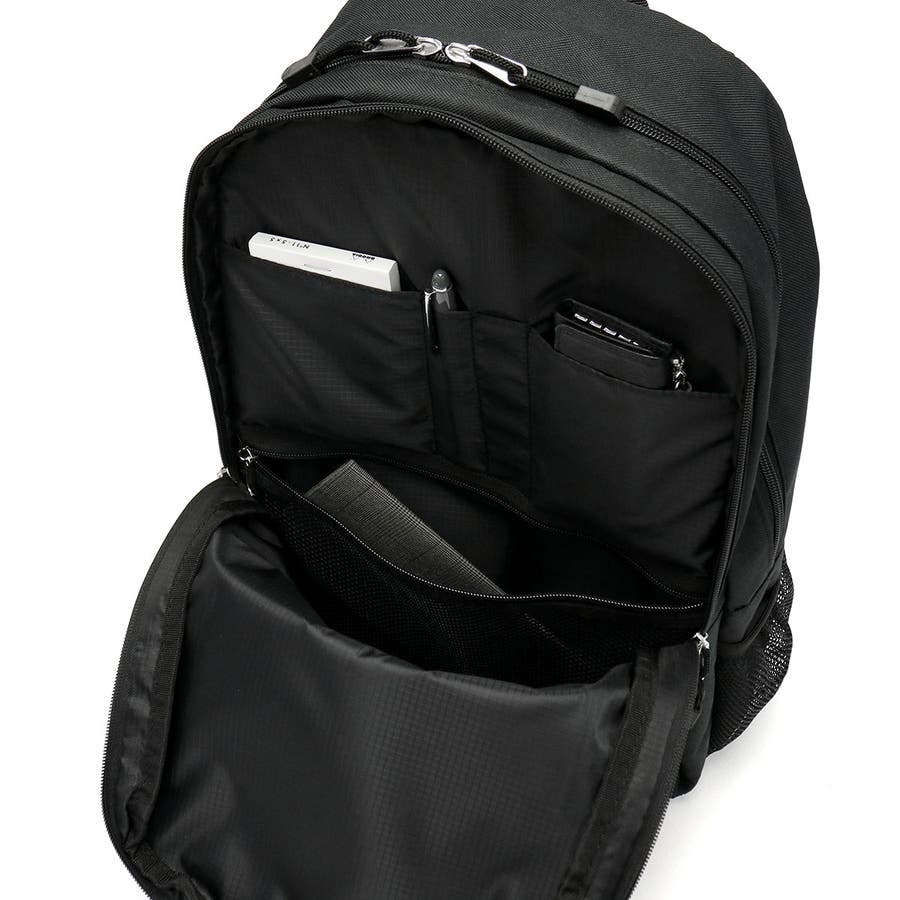 本体は、荷物の仕分けがしやすい2層構造。メインルームはA4サイズがゆったり収まるちょうどよいサイズ感です。また前面収納部には、小物をすっきり整理できるオーガナイザーポケットを装備。内外に設けた豊富なポケットで、使い勝手を高めた仕上がりが魅力です。