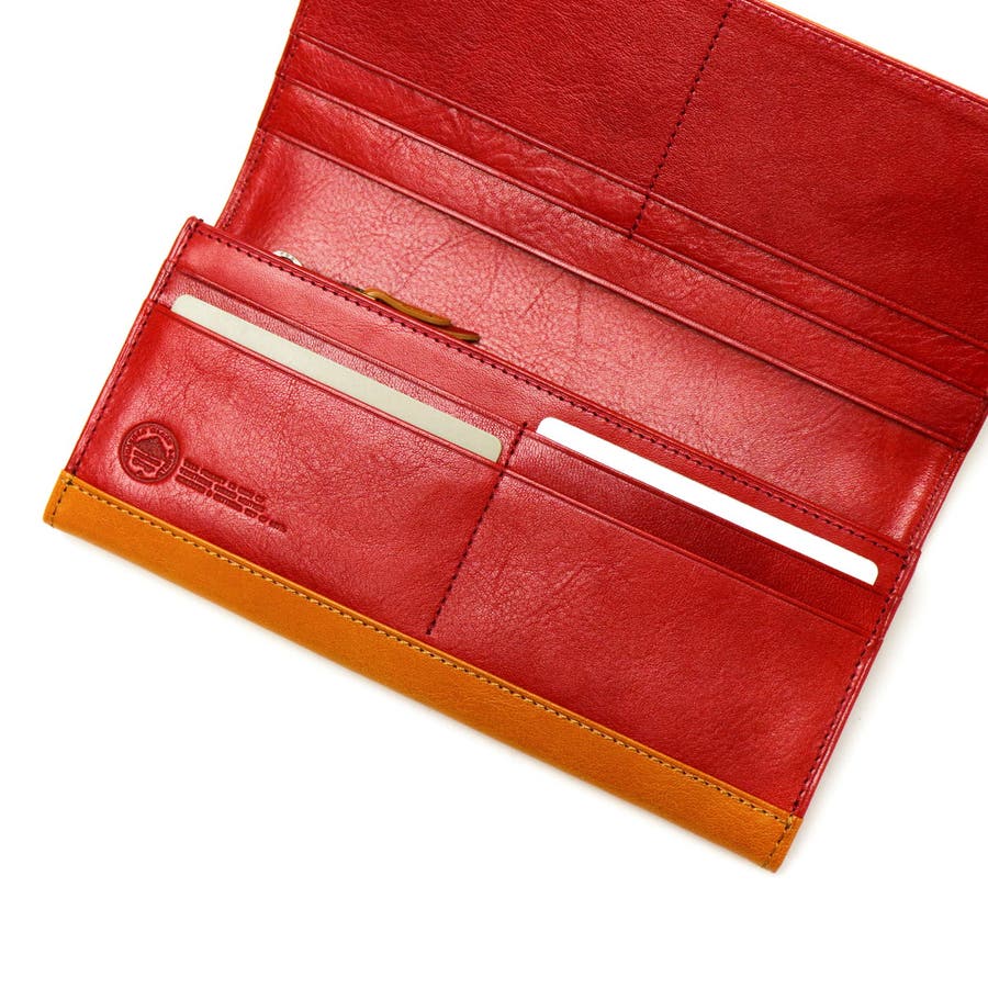 鮮やかな色彩と透明感が美しい、カラーコンビシリーズ『キャーロ』の長財布。艶のあるイタリアンレザーが放つ高級感に加え、カラフルに仕立てられた内装で遊び心が感じられます。かぶせ部分を開くと印象がガラッと変わるギャップがポイント。持つ人の心も明るく色付け、元気を与えてくれるような雰囲気が魅力です。