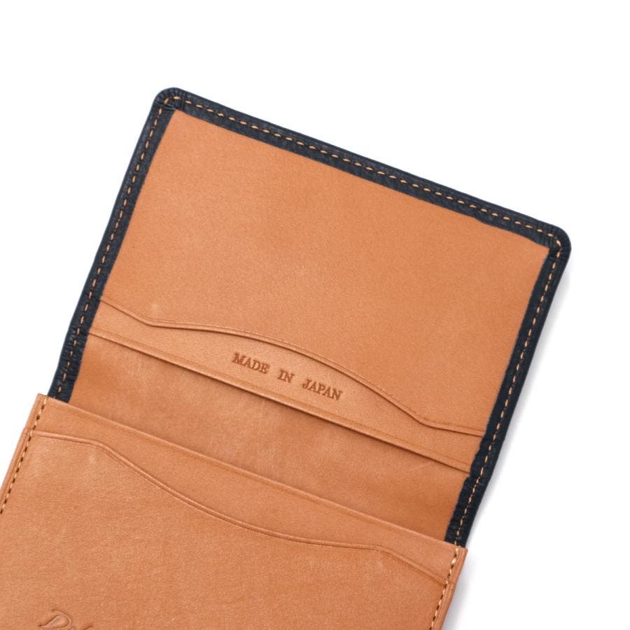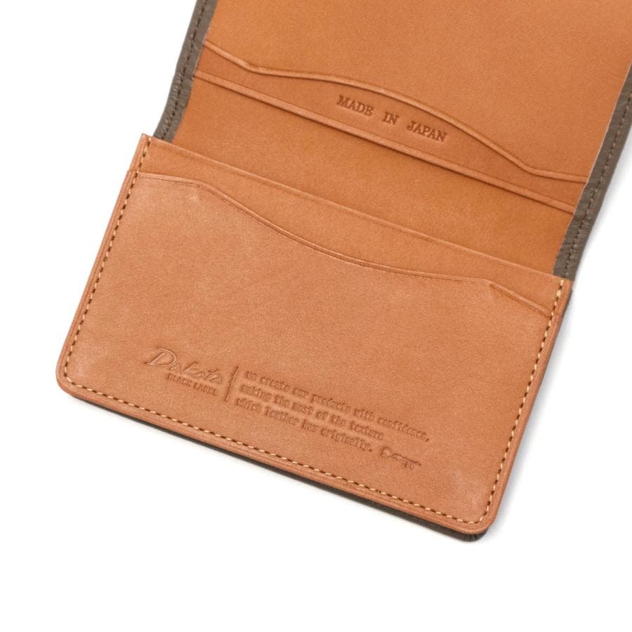 材料・縫製ともにメイドインジャパンで実現した上質感が際立つ『バシレウス』シリーズの名刺入れです。外側は肉厚なシュリンクレザーによる柔らかな印象に、内装はヌメ革を使用したスッキリとした印象となっており、このマッチングがグレード感を演出しています。20枚ほどの名刺が入るメイン収納部の他、実用的なフリーポケットも設置され、複数の名刺を整理しながら管理することができます。