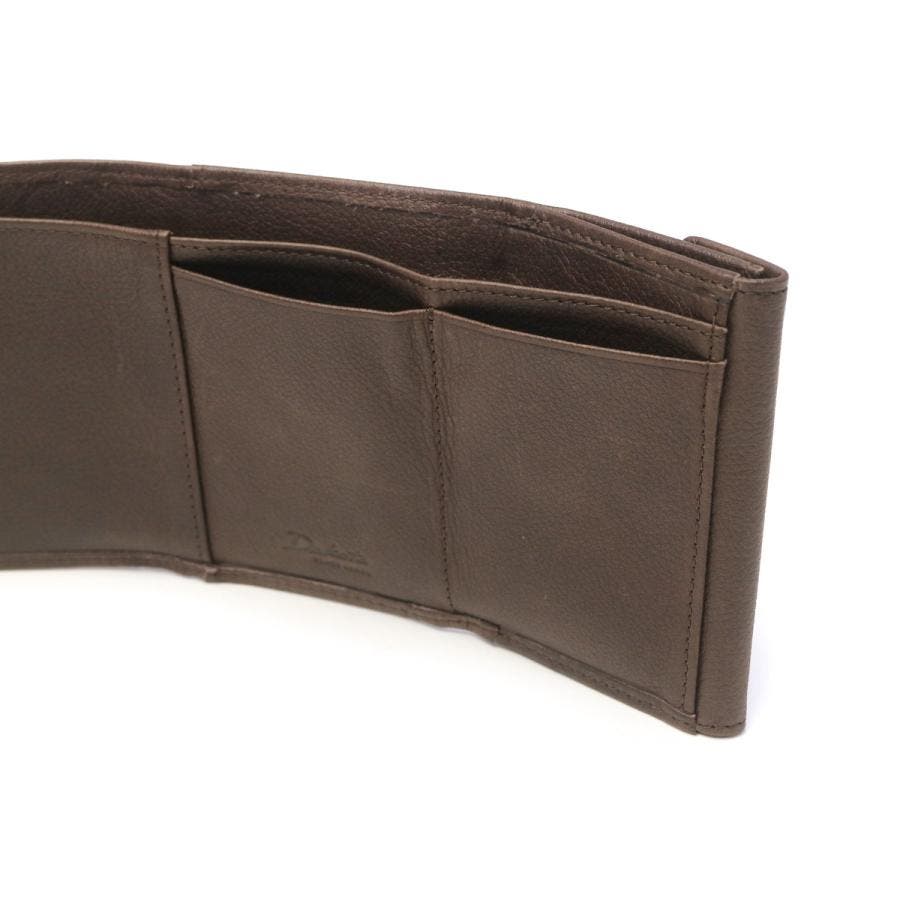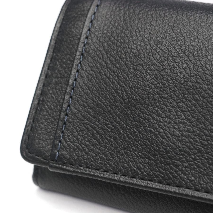 シンプルなフォルムに施されたカラーステッチが目を引くベーシックなお財布シリーズ『リバー5』の三つ折り財布。しっとりと手に馴染む牛革オイルレザーを使用し、上品な素押しとカラーステッチがアクセントとなり、シンプルなフォルムを引き立ててくれます。マチ付きの小銭入れは、見た目以上に収納できるので、小銭入れ感覚でポケットに入れて持ち歩けます。ビジネスシーンでも安心して持てるベーシックなデザインとなっています。