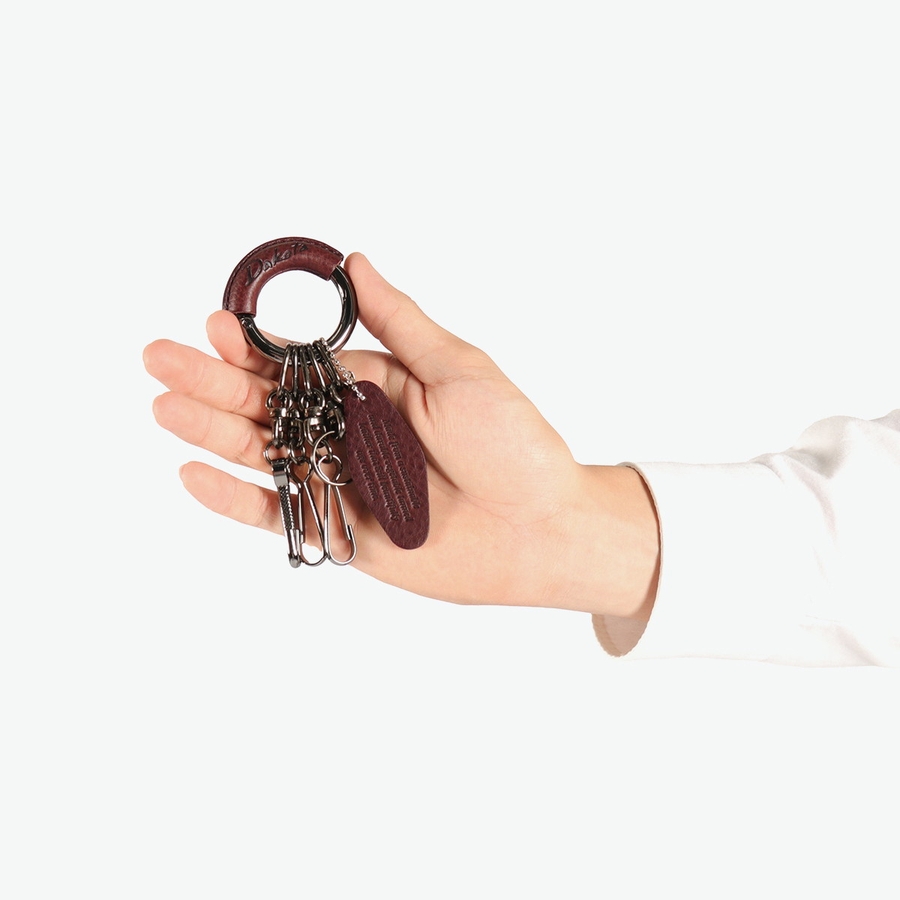 イタリア製牛革を使用したシリーズ「ミネルバアクソリオ3」のキーホルダー。鮮やかなイタリアンレザーを重厚感のある金具に合わせました。使うほどに深まる革の風合いが魅力です。デザイン性の高さのみならず、バッグのハンドルやベルトループにもつけやすい丸リングタイプで実用性も兼備。洗練された大人にふさわしい上質なアイテムです。