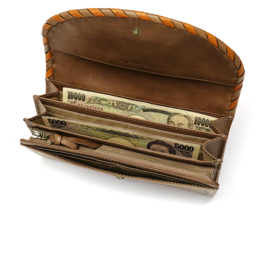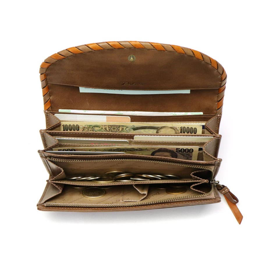 ベーシックなかぶせデザインの長財布。大きく開く札入れスペースが2つあり、カードはたっぷり22枚も収納できます。L字ファスナー式の小銭入れは、3つに仕切られているので、整理整頓がしやすいつくり。お支払いは現金派の方も安心の大容量タイプです。
