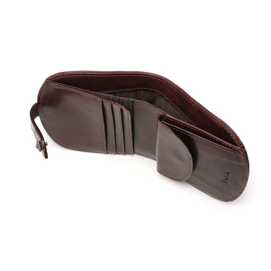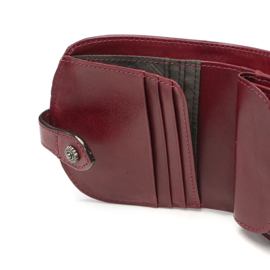 艶やかなイタリアンレザーと、アンティーク調の金具がポイントの『リードクラシック』シリーズ。こちらは、馬蹄のようなフレームデザインが魅力の二つ折り財布です。お札入れ・小銭入れ・カードと最低限の機能を備え、ミニバッグに入れても嵩張りにくいコンパクトサイズ。しなやかな曲線とヴィンテージ感溢れる色合いが、レトロで愛らしい逸品となっております。