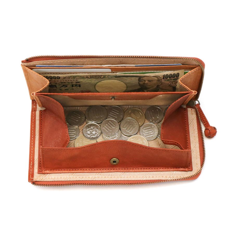 すっきりと見える四角いフォルムが印象的な『ピアッタ』のL字ファスナー長財布です。一番の特徴は、大きく開くギャルソンタイプの小銭入れ。メインファスナーを開いてすぐに中身が見えるため、取り出したい物に素早く手が届きます。脱着可能なカードホルダーも付属しており、より多くのカードが持ち運べる点も魅力です。