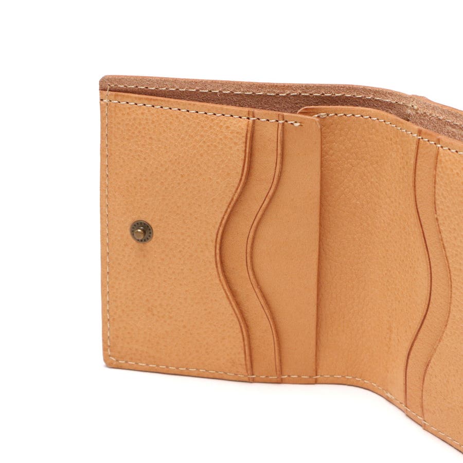 イタリアンレザーの香りや手触り、エイジングのお手入れなど、素材を楽しみながら永くお使いいただきたい「パティーナ」シリーズ。レザーの味わい深い経年変化をより感じられるよう、オールレザーで仕立てられたコンパクトな二つ折り財布です。シンプルだからこそ使いやすいミニマルなアイテムに仕上っています。