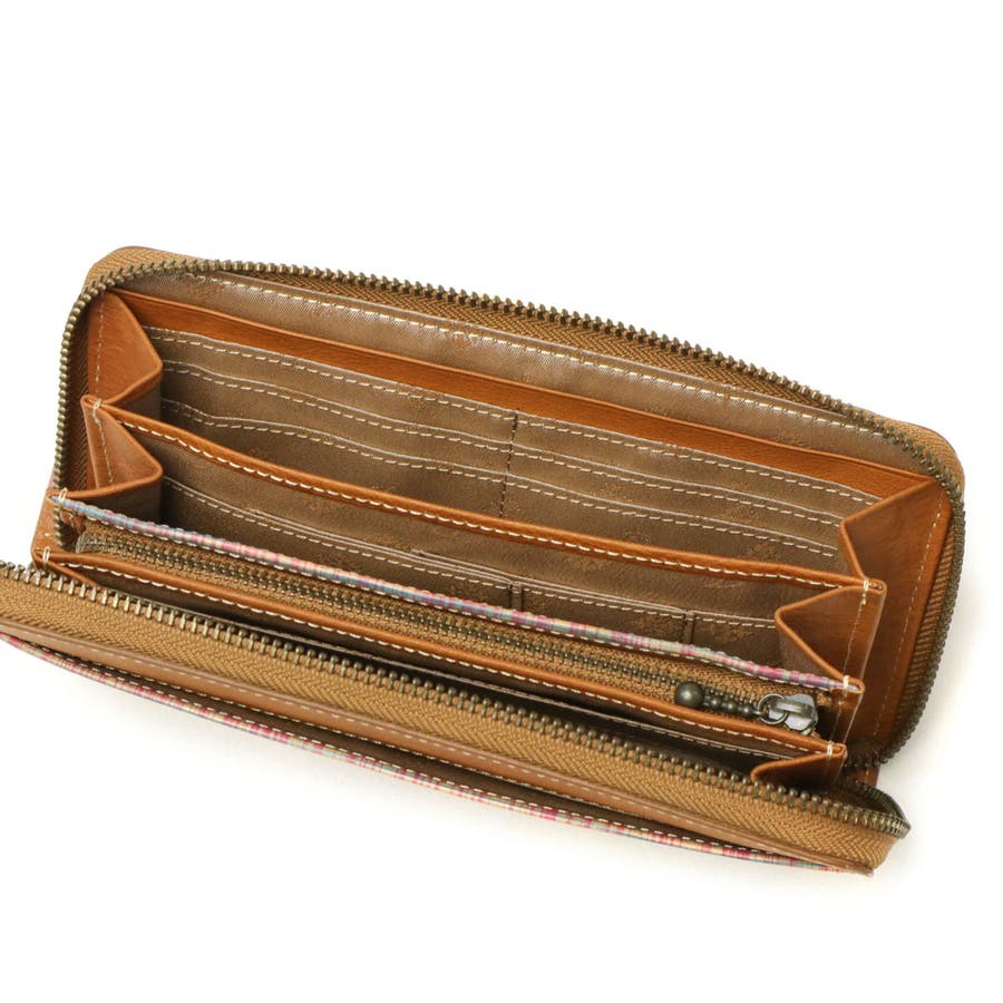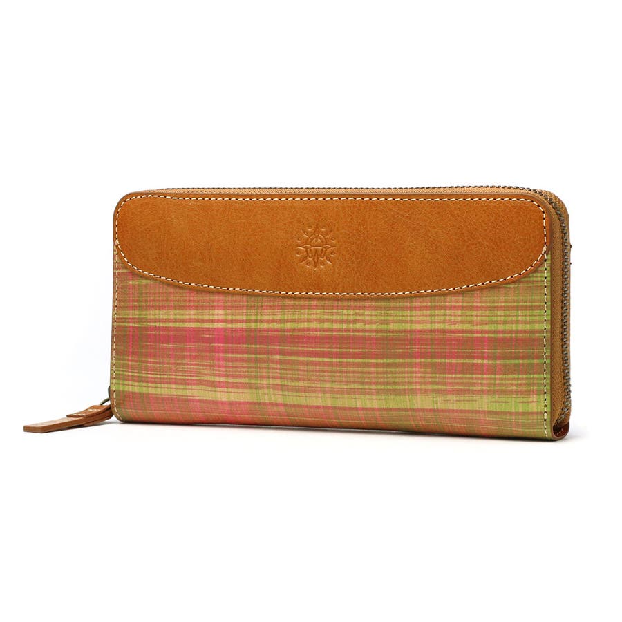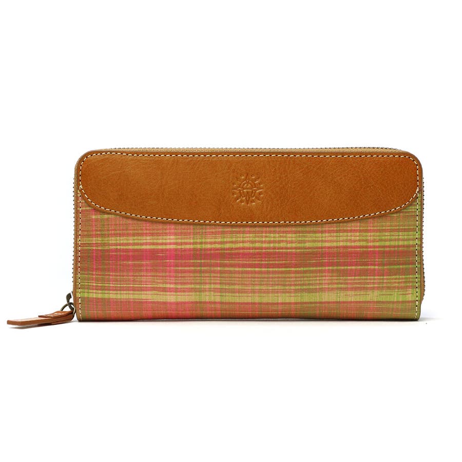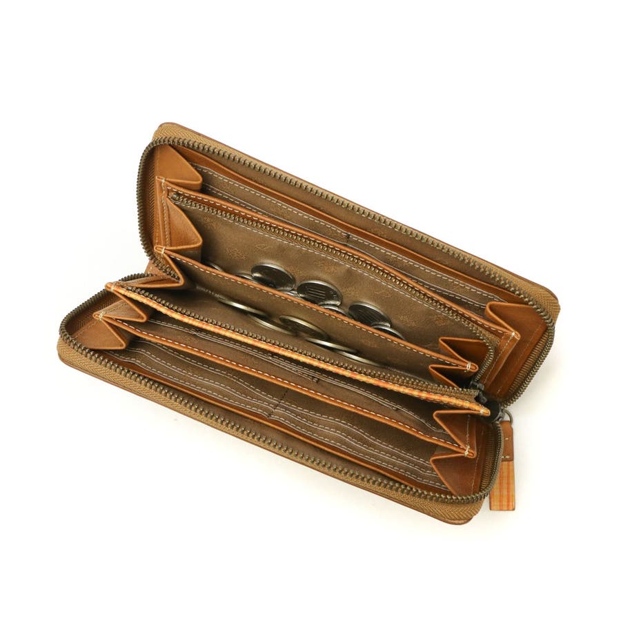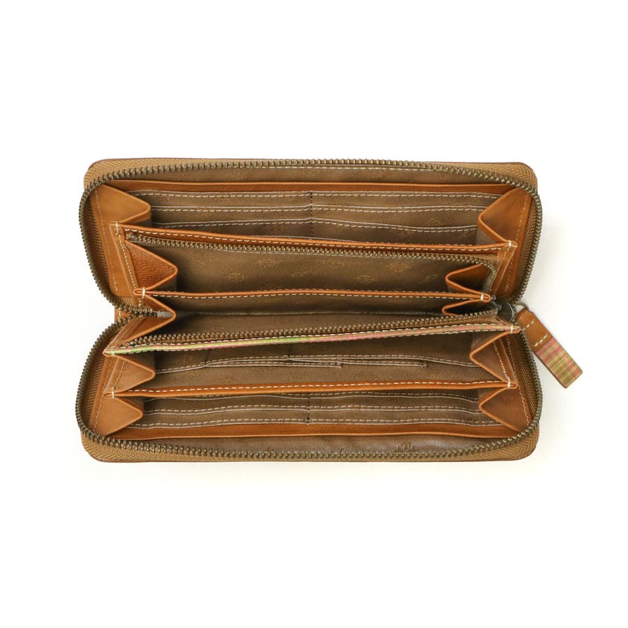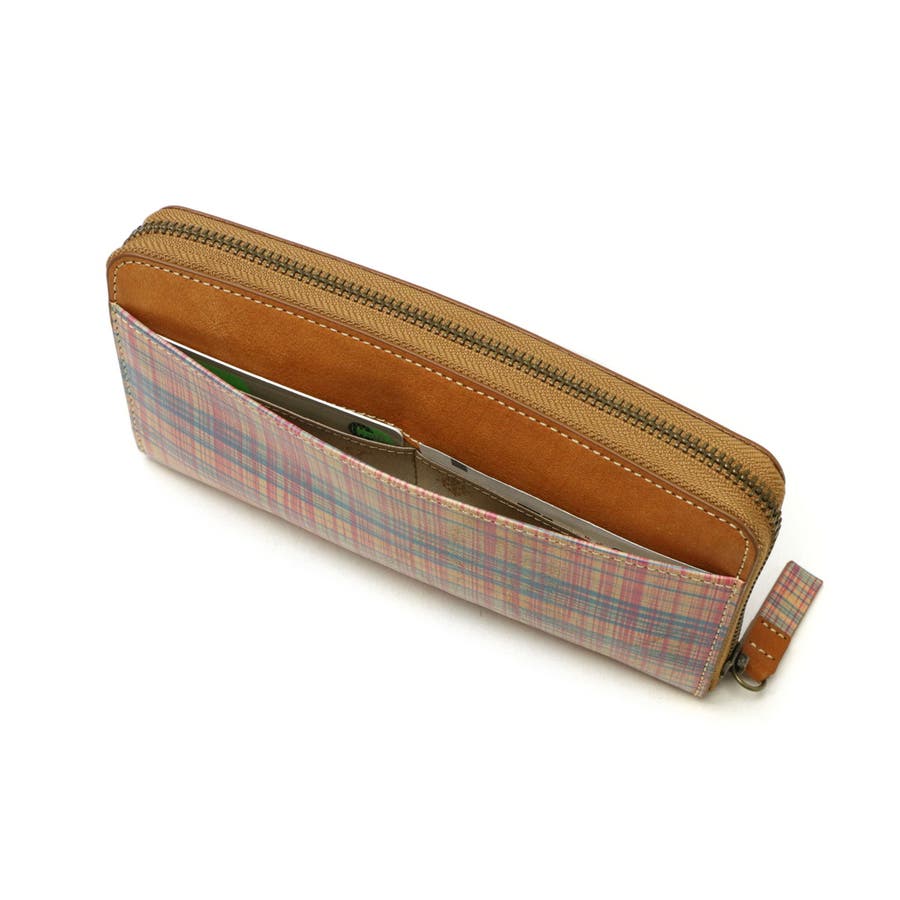 職人が1枚1枚手描きした、表情豊かなチェック柄が印象的なシリーズ『アトリエ』のラウンドファスナー型長財布。札入れスペースが3ヶ所、カードポケットが19ヶ所設けられ整理整頓がしやすいつくりです。L字型ファスナーの小銭入れは、大きく開き小銭の出し入れがスムーズにでます。柔らかで揺らぎのある線が、ナチュラルな雰囲気を演出。手触りも滑らかで革の風合いを楽しむことができます。