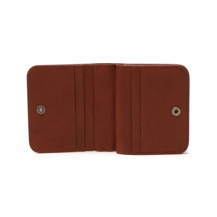 革本来の味わいを生かすためによりシンプルに仕上げられた「ラルゴ」シリーズ。こちらは、片手でも持ちやすい小ぶりの二つ折り財布です。小銭入れはボックス型で大きく開き出し入れがしやすいデザインに。コンパクトですが、カードや紙幣もしっかり収納できて実用的です。