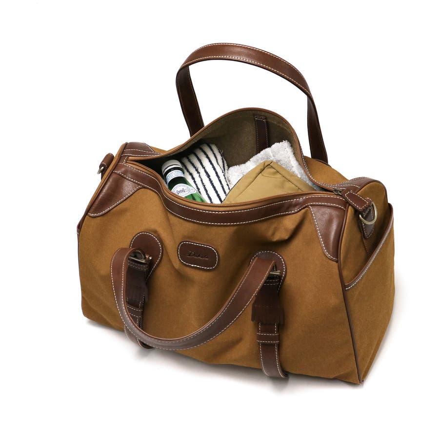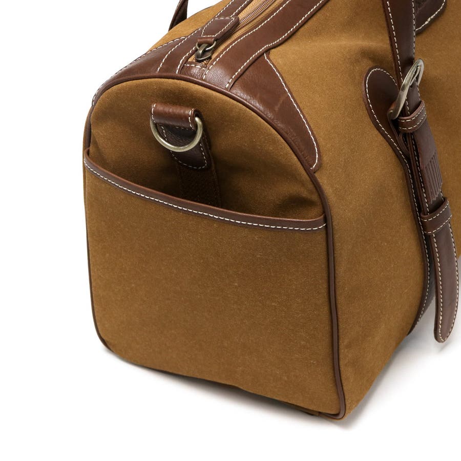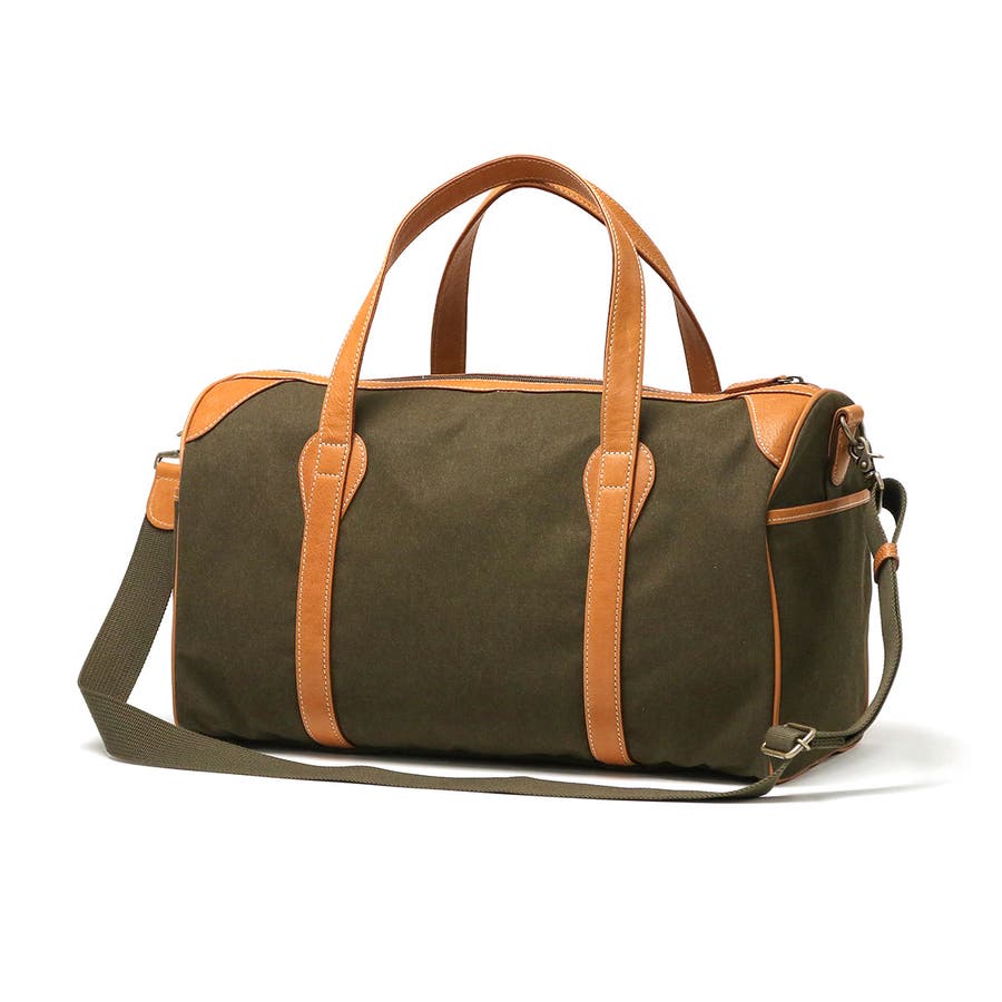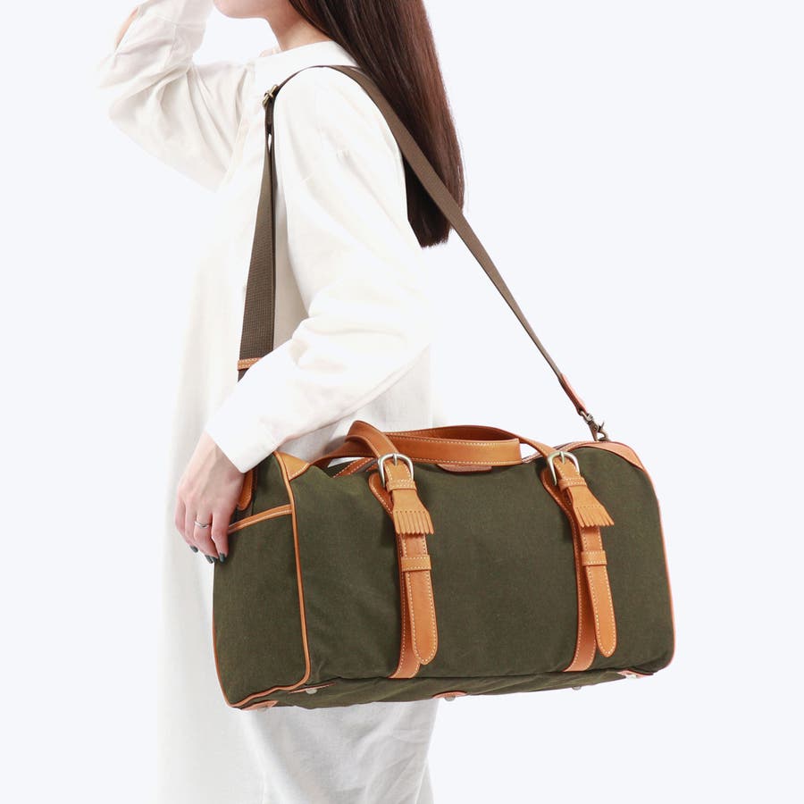 ヴィンテージ感漂うこなれ感のあるトラベルバッグシリーズ『フェリチッタ』の2WAYボストンバッグ。ミリタリークロスとヌメ革を使用し、丈夫かつ軽量に仕上げました。取り外し可能なショルダー紐付きなので、斜め掛けでも持つことが出来ます。トラベルシーンだけでなく、普段のお出かけにも持ちやすいサイズ感やデザインなので、シーンを選ばず気兼ねなくお使いいただけます。