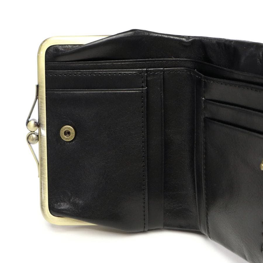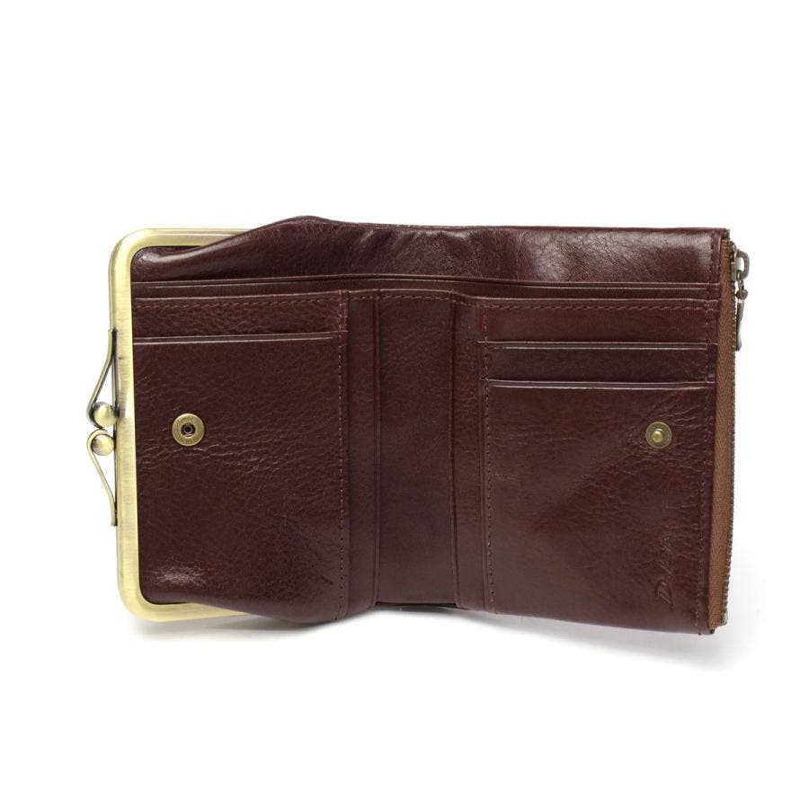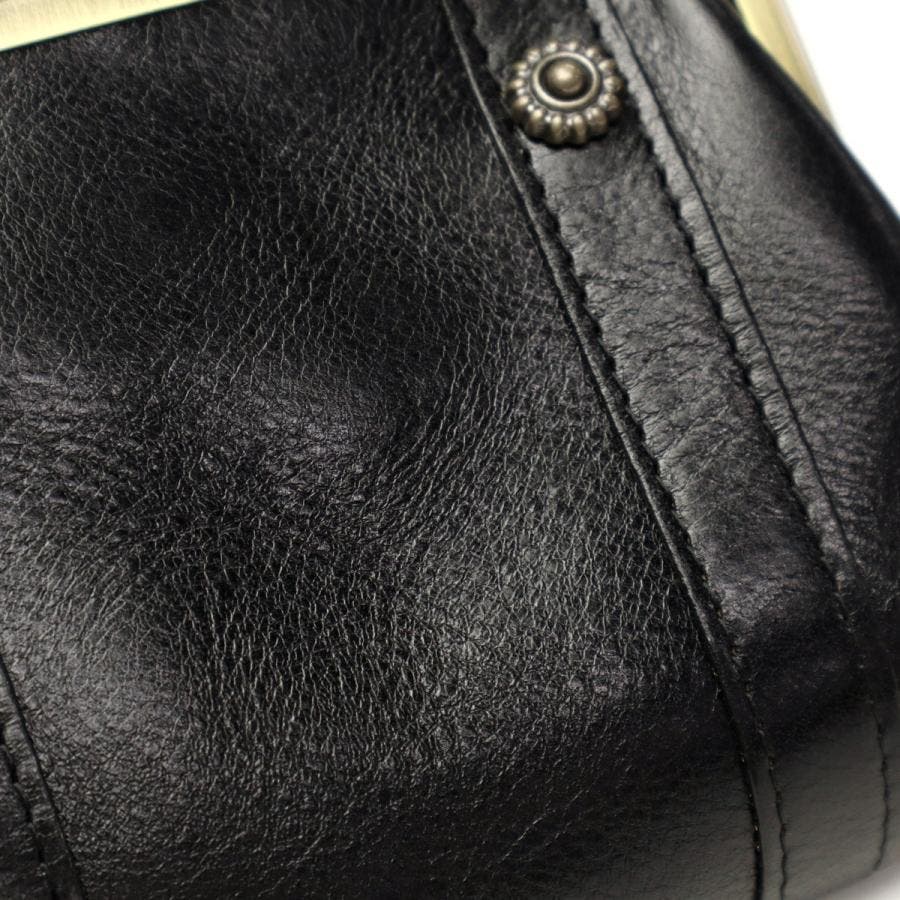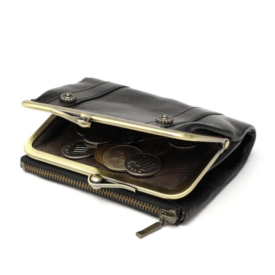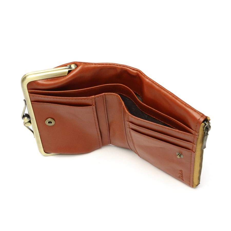艶やかなイタリアンレザーとアンティーク調の金具が魅力の『リードクラシック2』シリーズ。こちらは、クラシカルながま口デザインが愛らしい二つ折り財布です。ふっくらとしたフォルムに、2つの札入れスペースと4つのフリーポケットを備えた機能的なつくりがポイント。落ち着いた色味とクラシカルなディテールが、レトロで優しい雰囲気を演出します。