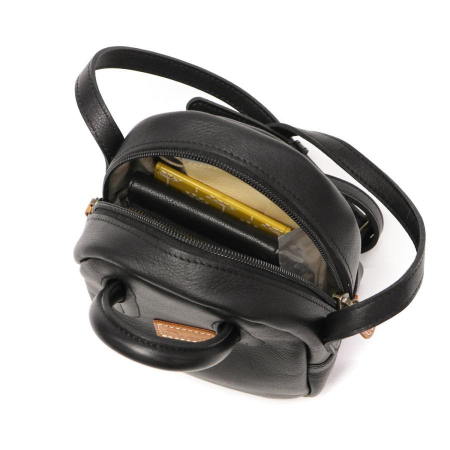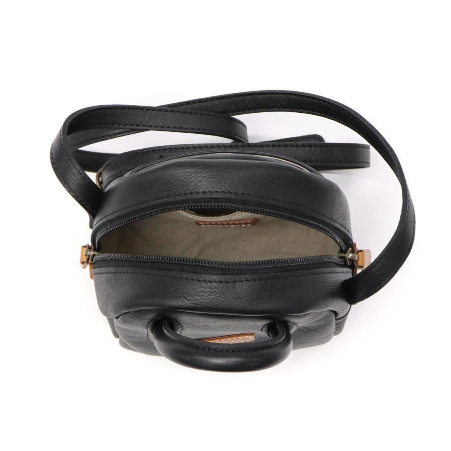 コロンと丸いかたちが可愛らしいシリーズ「ファビーニ」のコーデやオシャレのアクセントにもなるミニショルダーバッグです。コンパクトなフォルムは、リュックやボストンバッグなどと一緒に持ってもすっきり見えます。柔らかい雰囲気を醸し出すために、あえてふっくら感が出るように仕立てられたアイテムは、ふっくらとした持ち手とや持ち手の肉盛りステッチなどさり気ない日本の職人技が光ります。可愛さだけでなく丁寧なモノづくりが感じられるシリーズです。