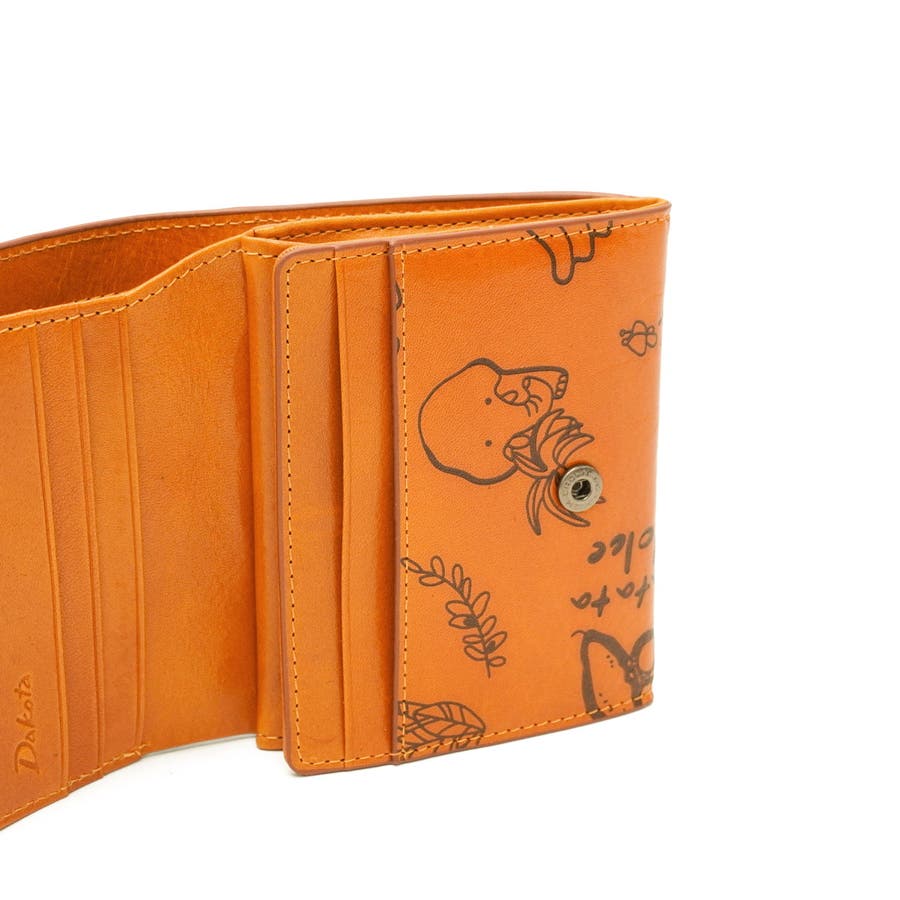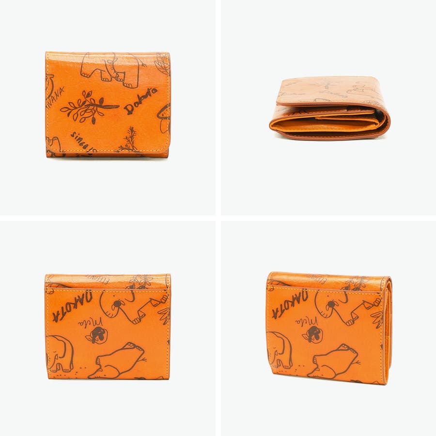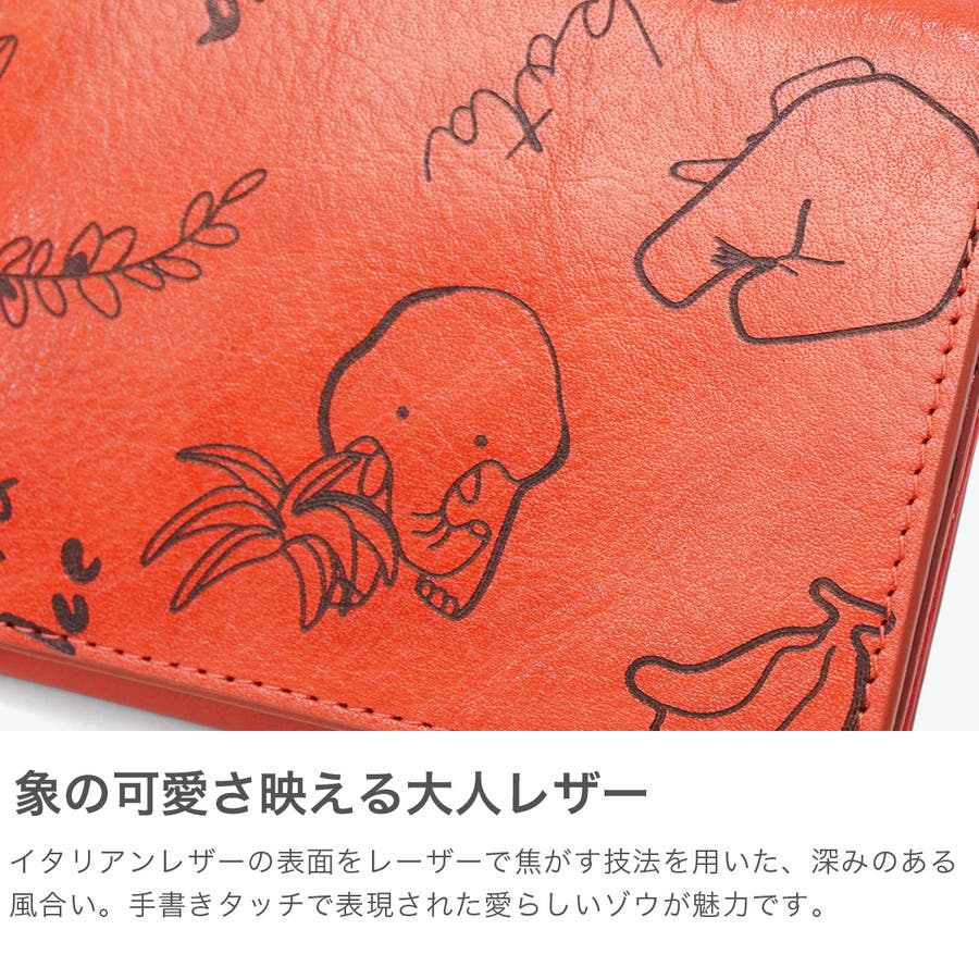 自由気ままに過ごすゾウたちを描いた、イタリアンレザーのお財布シリーズ『エレファンテ』の、BOX型小銭入れ付きの二つ折り財布です。手書きタッチのイラストで表現された愛らしいデザインが魅力のアイテム。深みのある風合いに仕上がっており、上品でありながら遊び心溢れる逸品となっております。