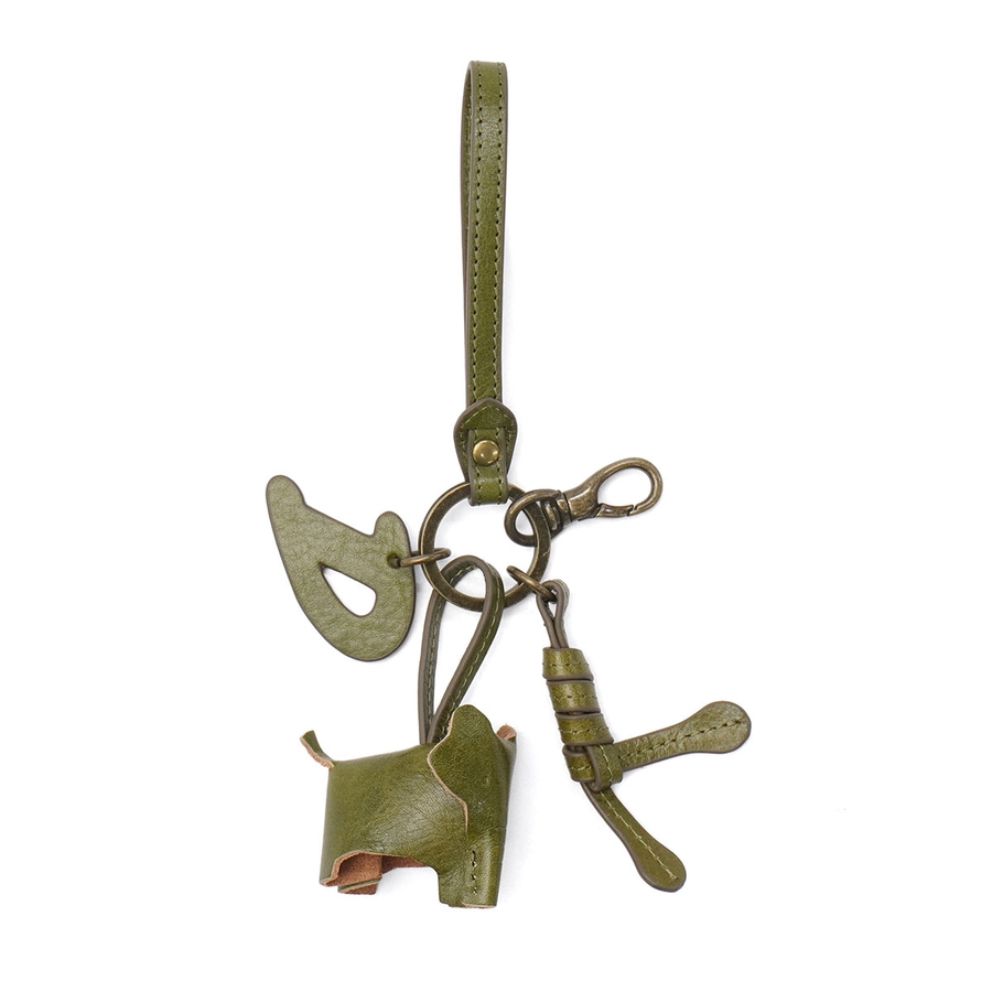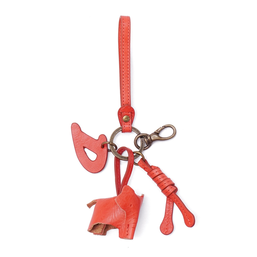 レザー仕立てのゾウのモチーフが愛らしい、キーホルダーです。ナスカンフック付きで、バッグなどに簡単に取り付けが可能。ゾウの他にもレザーチャームが複数ついているので、バッグにアクセントを添えてくれます。お揃いでの使用や、ギフトにもおすすめのアイテムになっています。