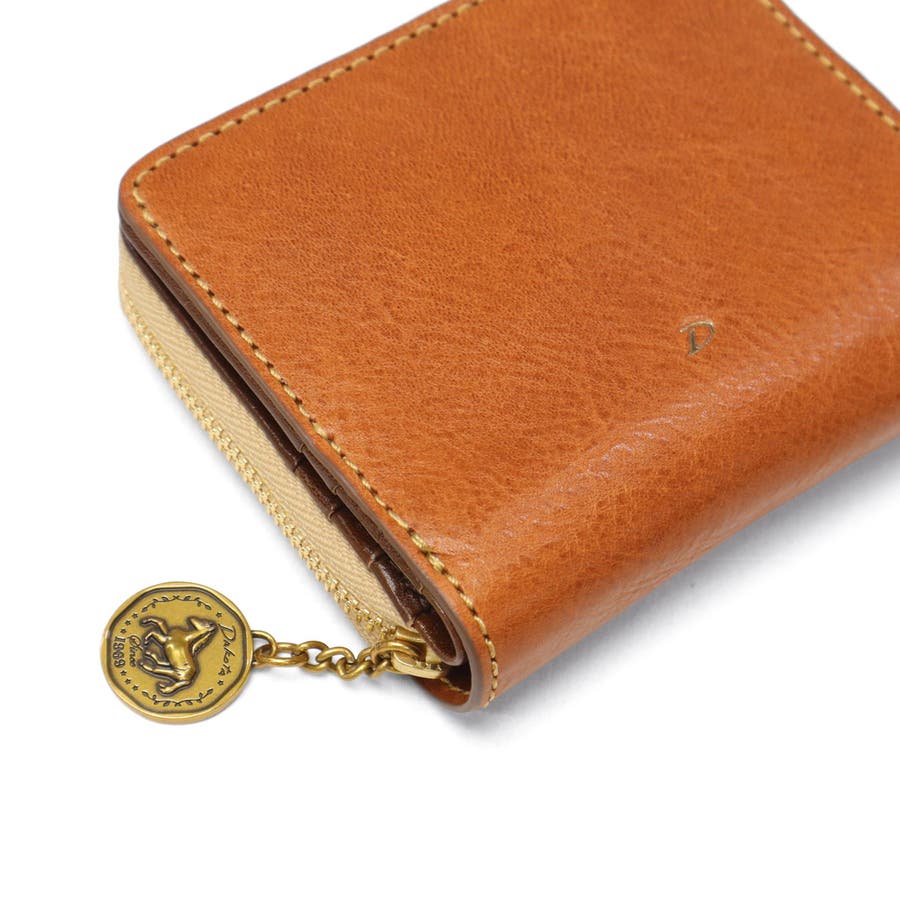 イタリア製のバケッタレザーを使用した、上質で長く使えるお財布シリーズ『ラフィナート』の二つ折り財布です。使うほどに手になじみ、レザー特有の風合いが楽しめます。内装にはブラウンやチョコカラーの牛革をあしらったコンビカラーが上品で、収納力と使いやすさも◎。また、アンティークコイン風のチャームには、ラッキーモチーフの馬と馬蹄が裏表でデザインされ、縁起の良さも感じることのできる特別なアイテムです。