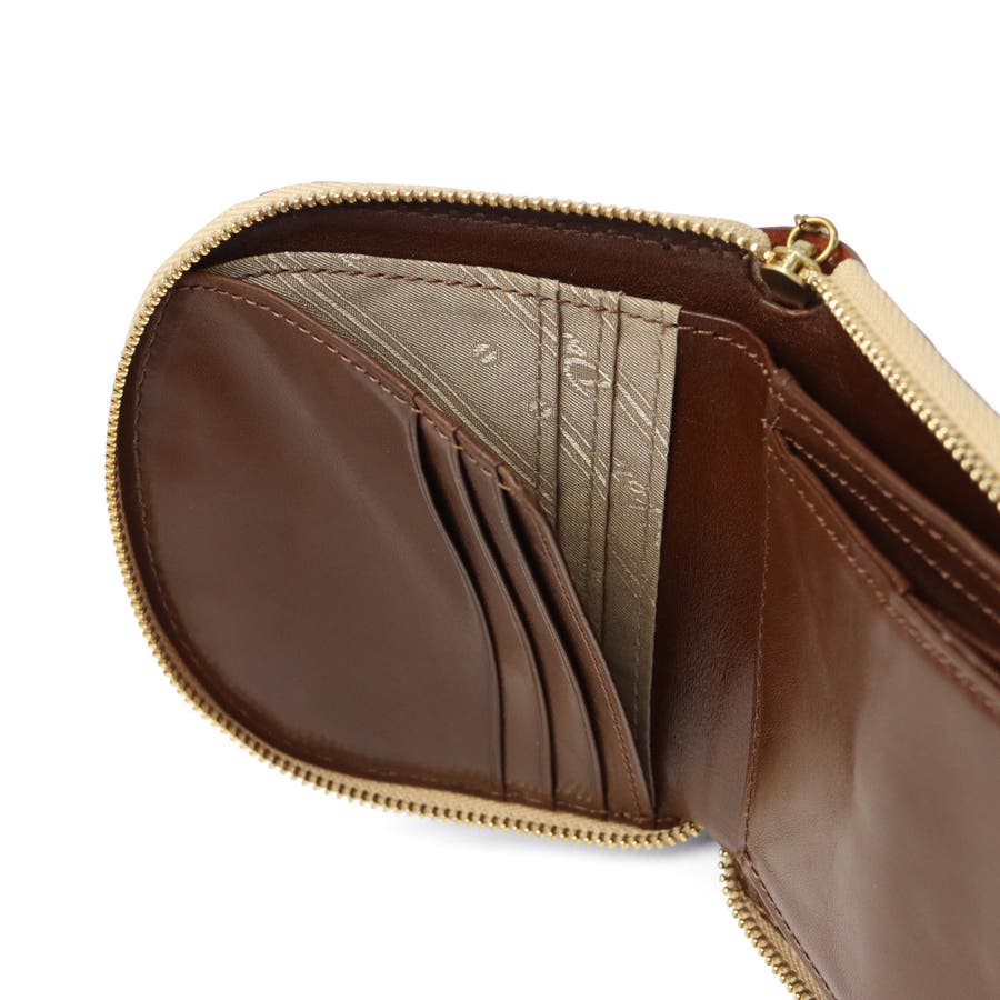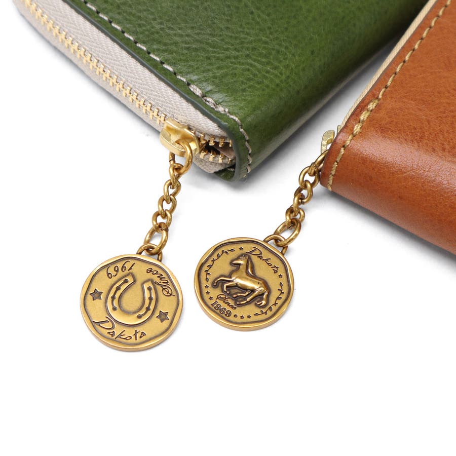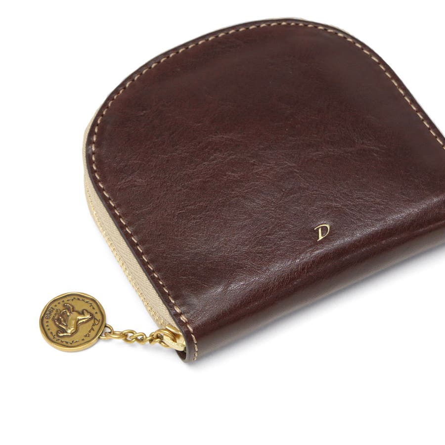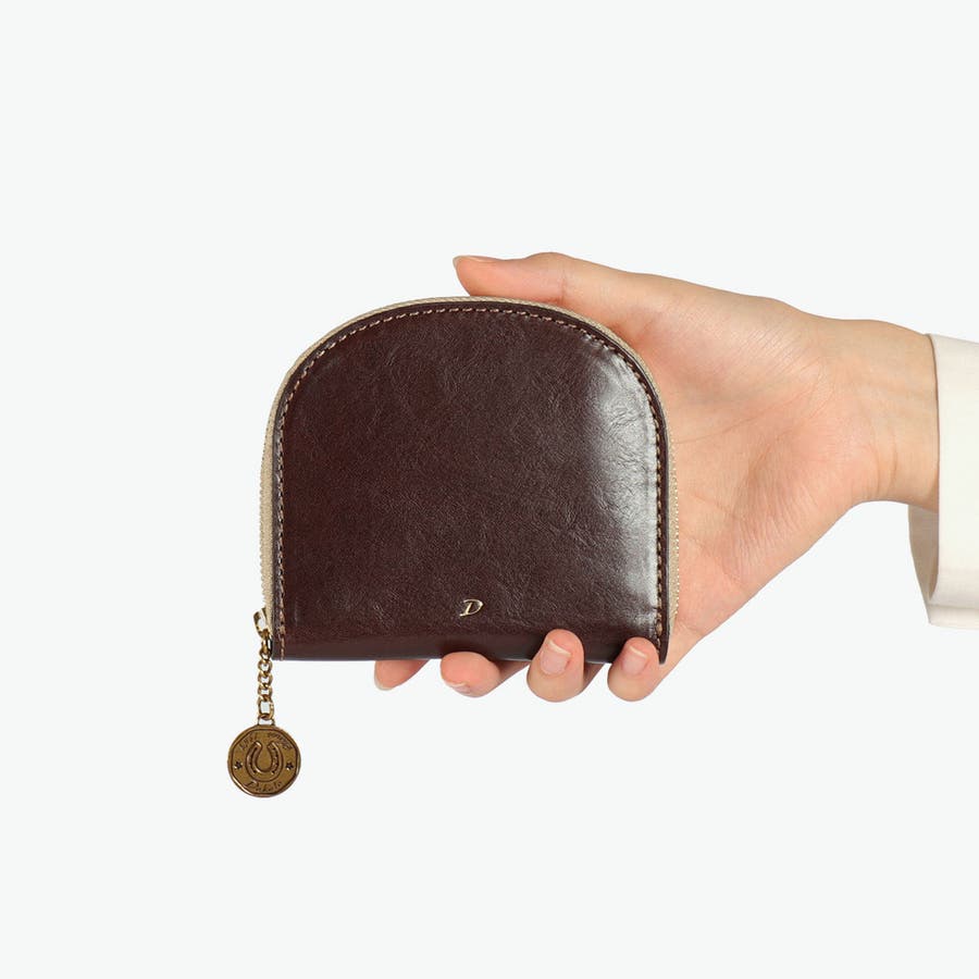 イタリア製のバケッタレザーを使用した、上質で長く使えるお財布シリーズ『ラフィナート』。こちらは、半円型のフォルムが可愛らしい二つ折り財布。内装にはブラウンやチョコカラーの牛革をあしらうことで、外装とのコンビカラーが上品なアクセントに。また、ファスナーの引手はアンティークコイン風となっており、ラッキーモチーフの馬と馬蹄が裏表でデザインされ、縁起の良さも感じることのできる特別なアイテムです。
