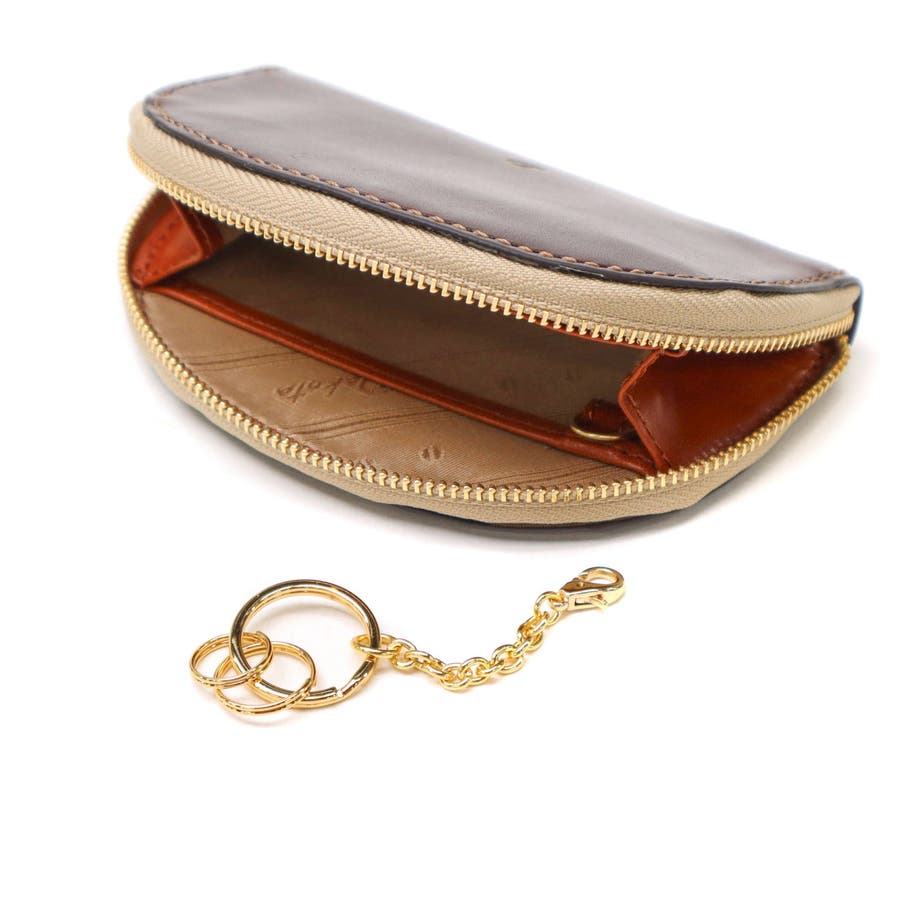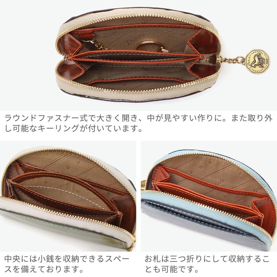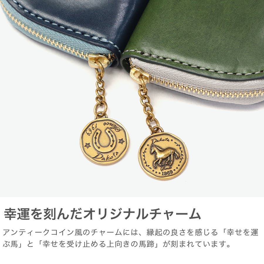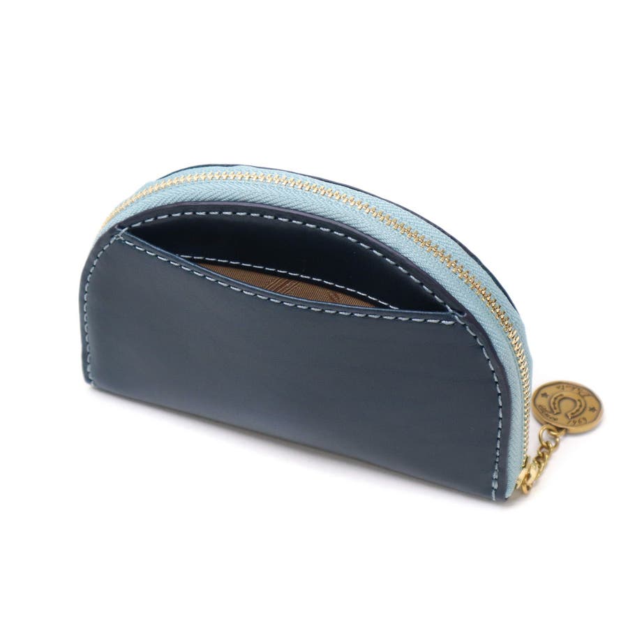 イタリア製のバケッタレザーを使用した、上質で長く使えるお財布シリーズ『ラフィナート』。こちらは、半円型のフォルムが可愛らしいミニ財布やキーケースなどとしてお使いいただけるマルチケース。内装にはブラウンやチョコカラーの牛革をあしらうことで、外装とのコンビカラーが上品なアクセントに。また、ファスナーの引手はアンティークコイン風となっており、ラッキーモチーフの馬と馬蹄が裏表でデザインされ、縁起の良さも感じることのできる特別なアイテムです。
