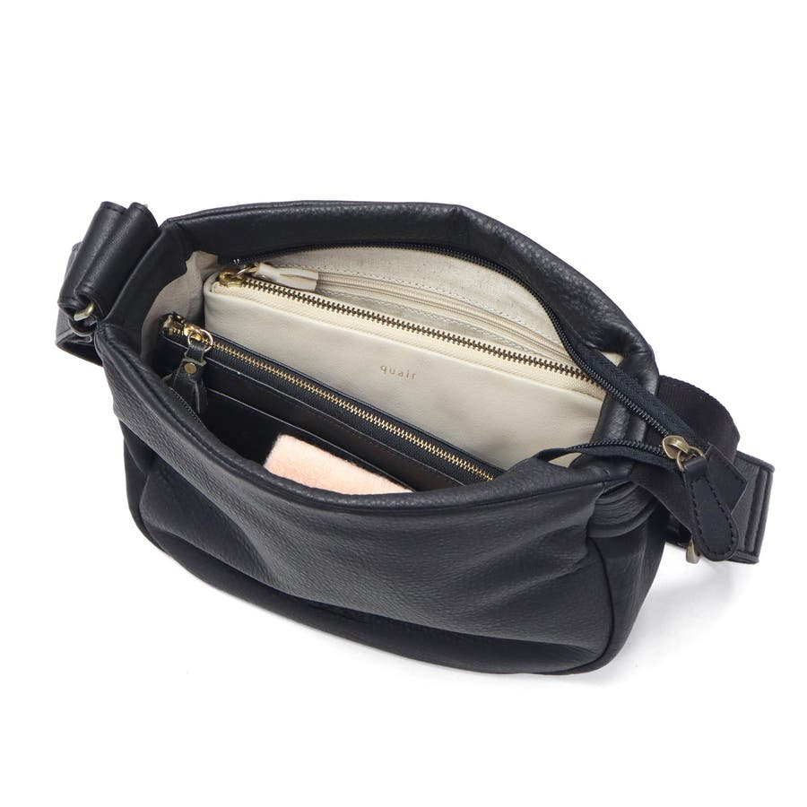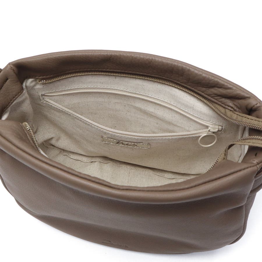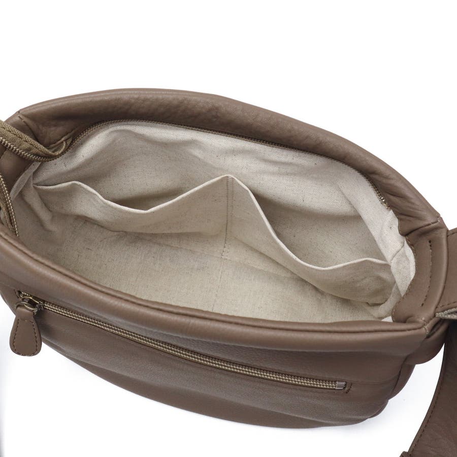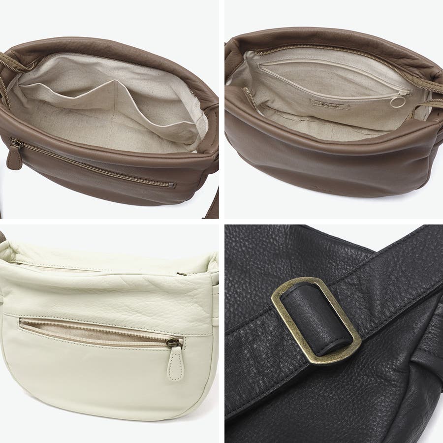 柔らかな牛革とふっくらフォルムが魅力のショルダーバッグです。コンパクトな見た目ながらも、必要なものはしっかり入る日常使いしやすいサイズ感です。太めのショルダーストラップは肩当たり良く、安定感も抜群。くたっとした質感と丸みのあるシルエットが、シンプルながら洗練された印象を演出します。