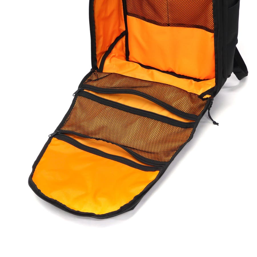 スケーターのリアルな声をもとに、バンタンデザイン研究所のスケートボード&デザイン専攻の現役学生と共同開発したバックパック。遠征や旅行時にガッツリ荷物を持ち運べる大容量サイズです。スケートシーンにとどまらず、通学に便利なPC収納やインナーバッグなど、日常使いできる機能を多数搭載しているのも嬉しいポイント。見た目をすっきりシンプルにデザインすることで、どんな服装にもなじむ使い勝手の良いバッグとなっています。