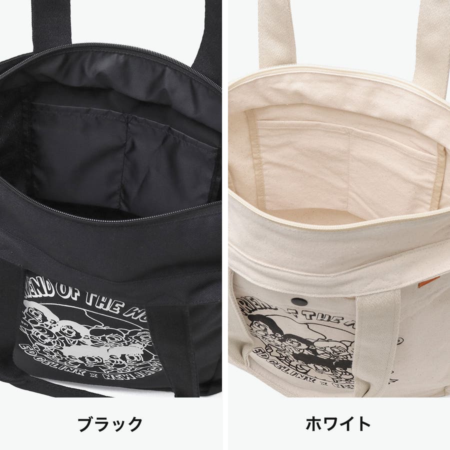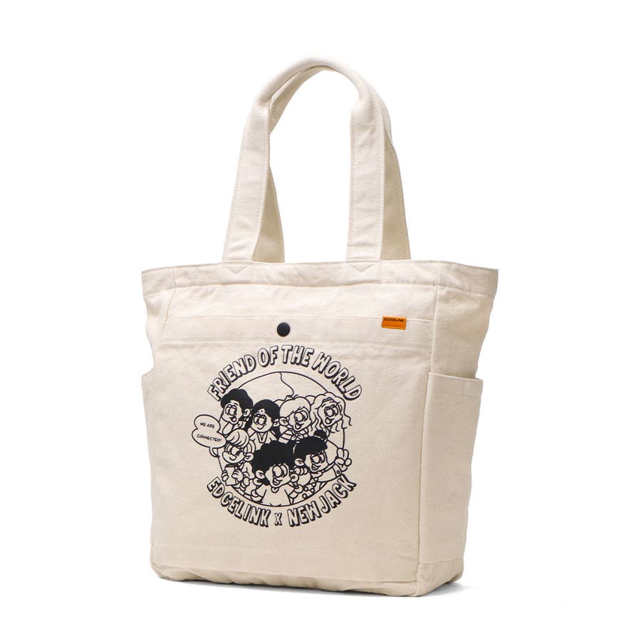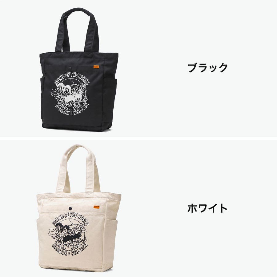 人気イラストレーター「Dai/NEW JACK」による、限定アートワークを大胆にプリントした『WACPAK NJ』シリーズのトートバッグです。“Friend of the world”をテーマにした、アメリカンテイストのポップなデザインが魅力。ナチュラルな風合いの素材を採用し、ホワイトは帆布素材、ブラックは帆布調のポリエステル素材を使用しています。大きく開くメインファスナーにより中身の見やすさや出し入れのしやすさを確保。通学や旅行などさまざまなシーンで活躍する、機能性とデザイン性を兼ね備えたアイテムです。