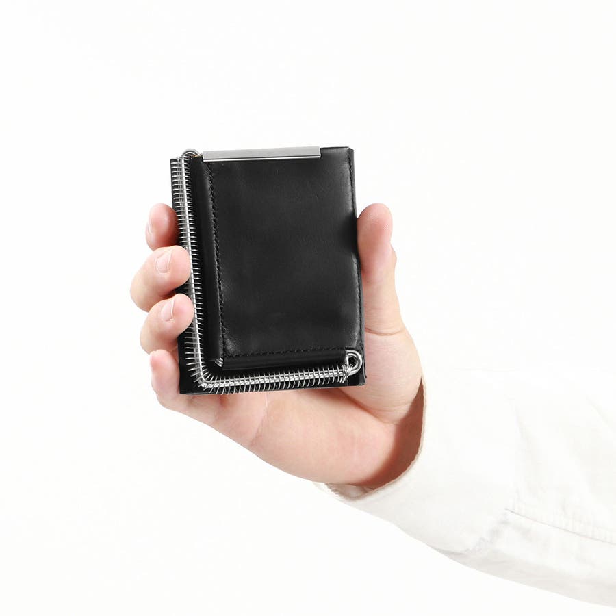 "日常の物事をヒントに"。思わず触りたくなるような『仕掛け』を用いたアイテムを製作するED ROBERT JUDSON。こちらはファスナーの代わりにバネの伸縮で開閉する、ユーモア溢れる三つ折り財布です。手のひらに収まるコンパクトなサイズ感と実用的なデザイン設計が魅力。シンプルなデザインでありながら遊び心あるアイテムです。