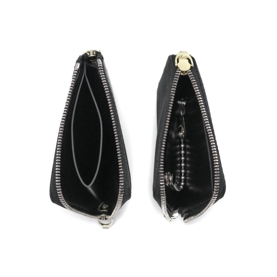 | 2つのポケットを備えた 最小サイズのミニ財布 1本のファスナーから2つのポケットが現れる独自の構造をもったラウンドジップ財布。スライダーの色でポケットの判別ができ、仕分けがしやすい構造です。XSサイズはクレジットカードがぴったり収まる最小サイズ。内側のキーチェーンはドットボタンで外すことが可能です。 |