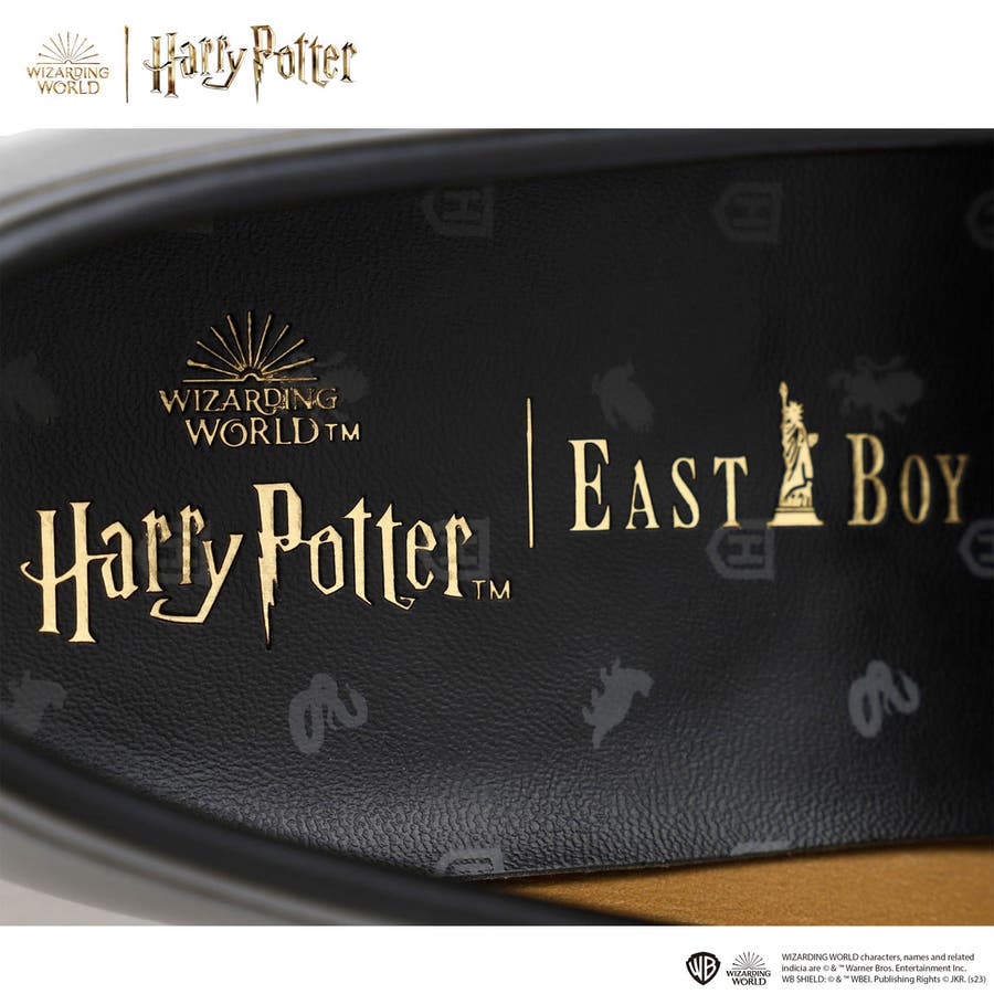 大人気シリーズ「ハリー・ポッター」のEASTBOY限定ローファー。ホグワーツの『H』を模ったチャーム付きです。チャームは取り外し可能なので、普段にも履きやすいデザインになっています。中敷きは各僚モチーフの入った総柄プリントになっている、「ハリー・ポッター」ファンにはたまらない仕上がりです。