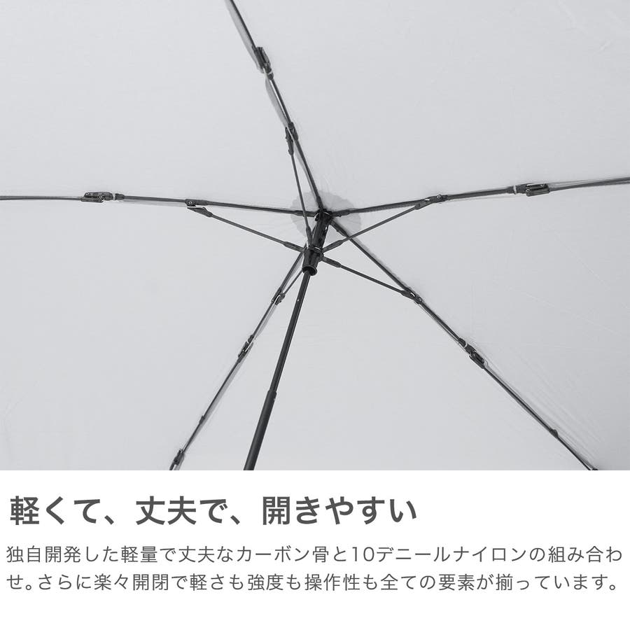 軽さと強度を兼ね備えたカーボンフレームを1から再構築し、スマホより軽く重さを感じさせない「魔法のような軽さ」を叶えた折り畳み傘。すっきりとしたスリムなボディでバッグにも収納しやすく、旅行時にも荷物量を気にせず持っていける安心の1本。親骨55cmの大きめサイズで、悪天候や日差しもしっかりカバーできます。