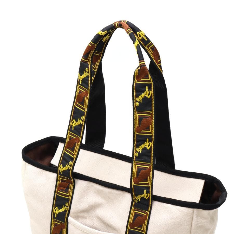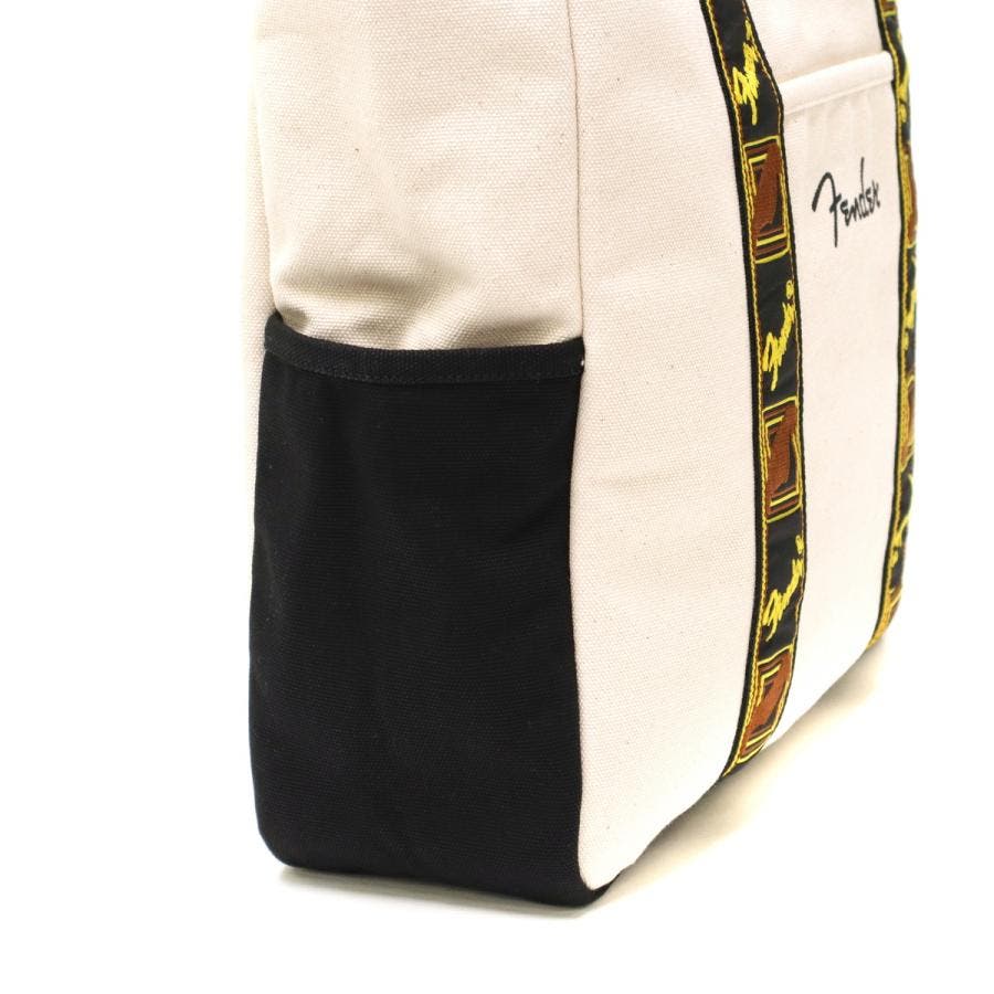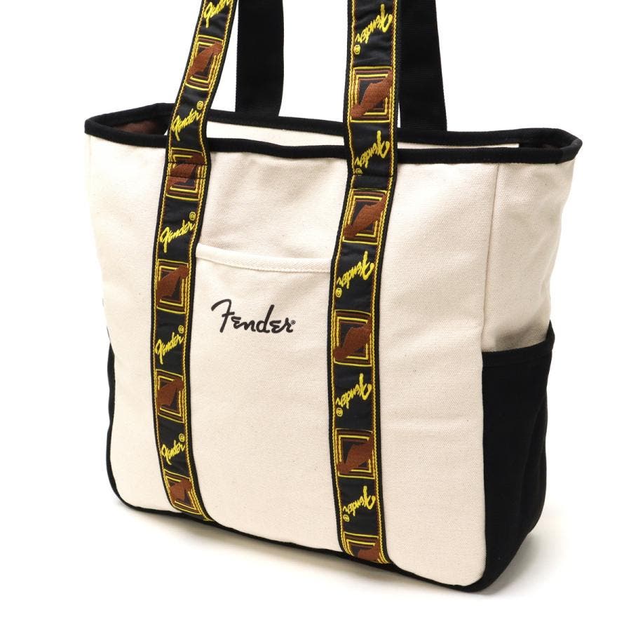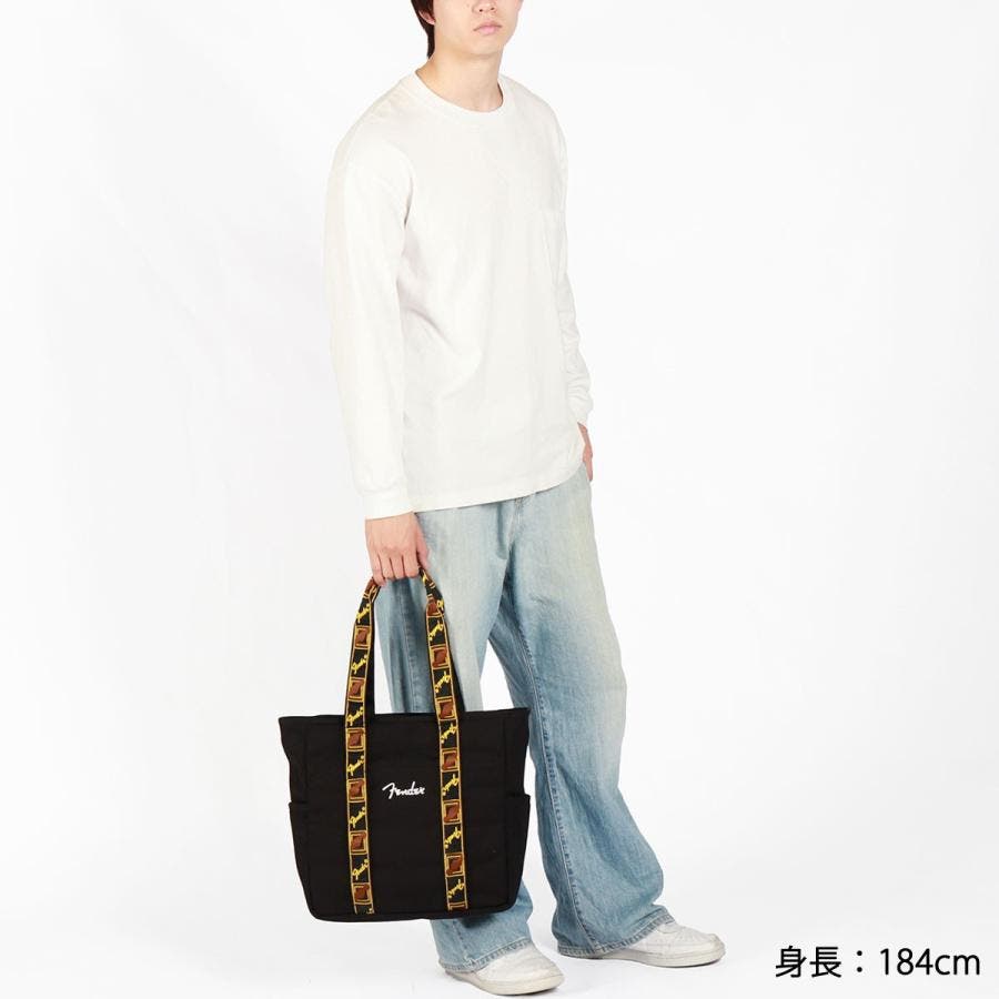 | 日常に溶け込む ギターを感じるバッグ 世界的楽器製造メーカー「Fender」のA4サイズのトートバッグ。フェンダーストラップの代名詞とも言えるモノグラムストラップを忠実に再現し、バッグのデザインに落とし込みました。本体素材にはコットンを使用しカジュアルな雰囲気に。またお出かけ時に持ち運びやすい実用的なサイズ感でシーンを問わず活躍できるアイテムです。 |