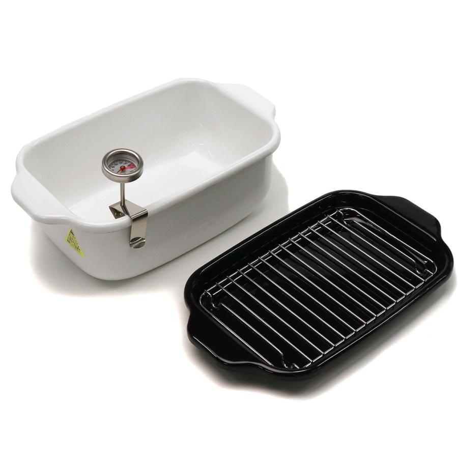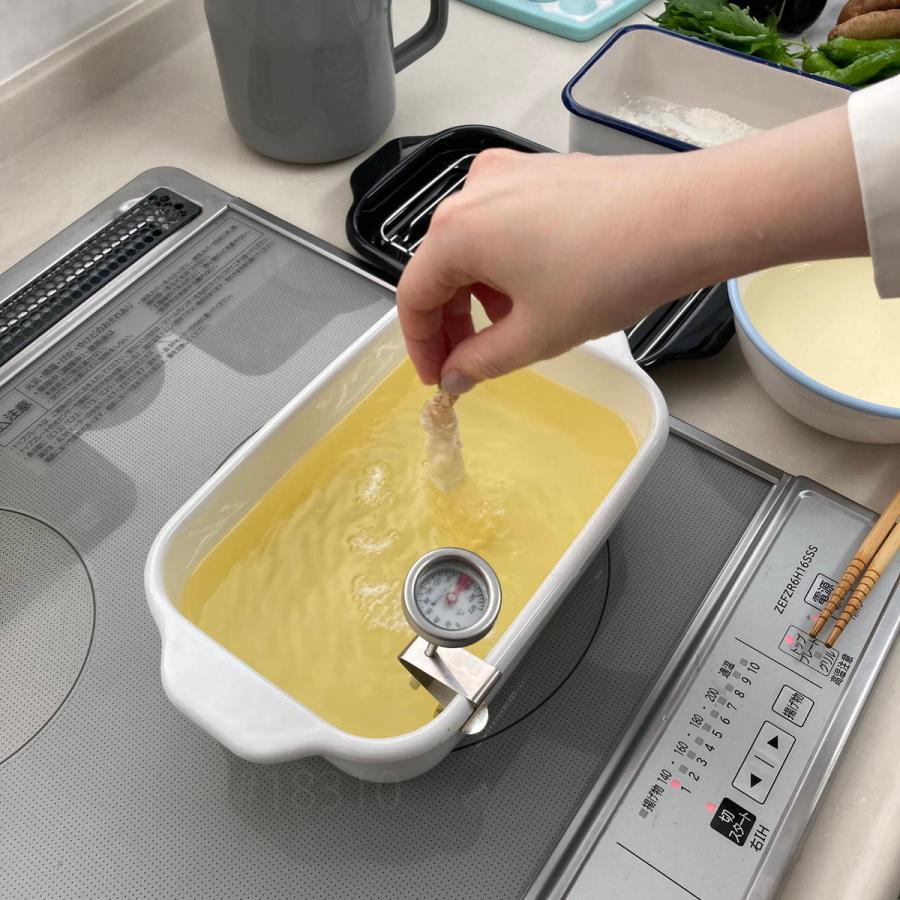 | 仕様 | <対応熱源> ガス火、電気ヒーター、IHヒーター100V <機能> ・長めの食材にも対応する内寸20cmサイズ ・省スペースに収納可能 ・食器洗浄機OK(温度計を除く) ・丸洗い可能な防水温度計付き(食器洗浄機不可) ・オーブン皿としても使用可能なバット付き ・適正油量が分かる刻印付き <容量> 適正油量:約 600g 満水容量:約 1.8L <付属品> スノコ網、バット、温度計、取扱説明書 |