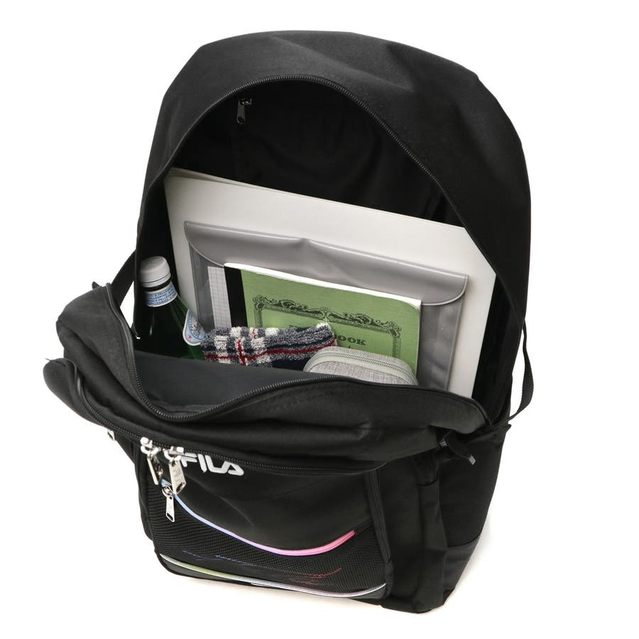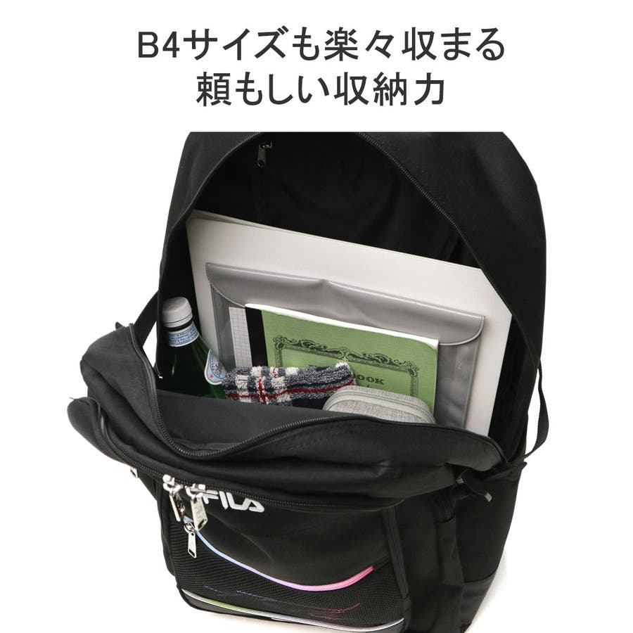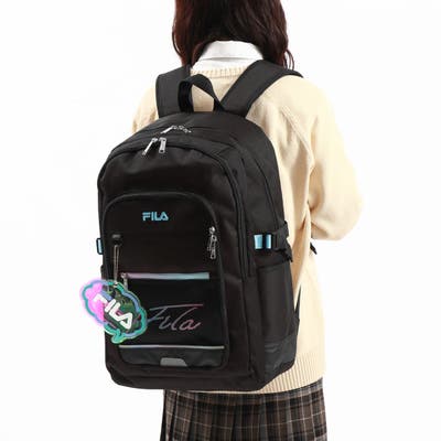 スポーツライフスタイルブランド『FILA/フィラ』の、ちょっとレトロなスタイルが新鮮なスクールリュックです。表面には撥水加工を施しているため、毎日使いでも安心。サイズは荷物をたっぷり収納できる35L容量で、メインルームにはデバイス収納に適したウレタンポケットも完備されています。グラデーションとオリジナルロゴプリントがポイントとなり、シンプルなのに目を惹くデザインで、通学にはもちろん旅行などのおでかけにもおすすめです。