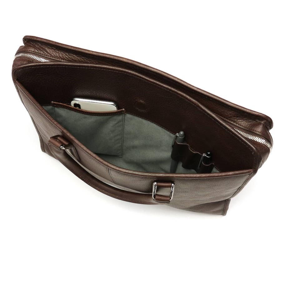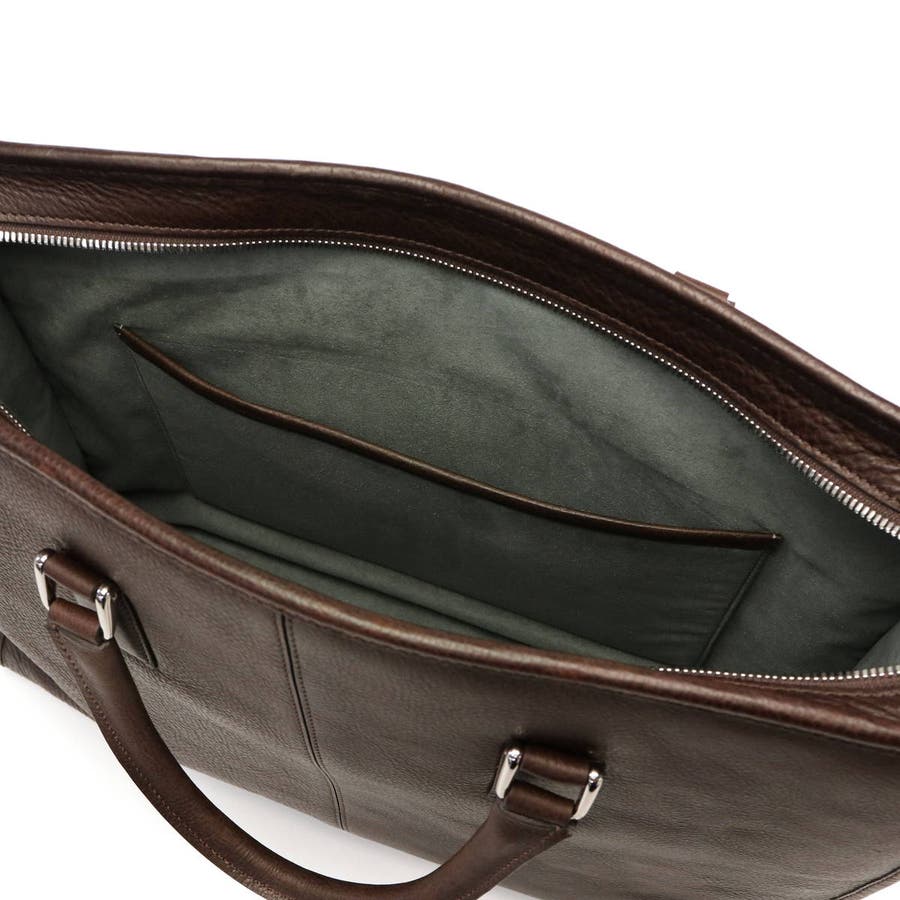シンプルなデザインの中にも至る所にこだわりを注ぎ込んだ2WAYブリーフケース。オイル感あるしっとりした革は使い込むほどに艶感が増し、綺麗にエイジングされていきます。消耗の激しいハンドルとファスナー部分は職人による徹底した作り込みで、末長くお使い頂くために考慮されたデザインがポイント。また、着脱可能なショルダーストラップにより、様々なシーンに合わせてお使い頂けるアイテムです。