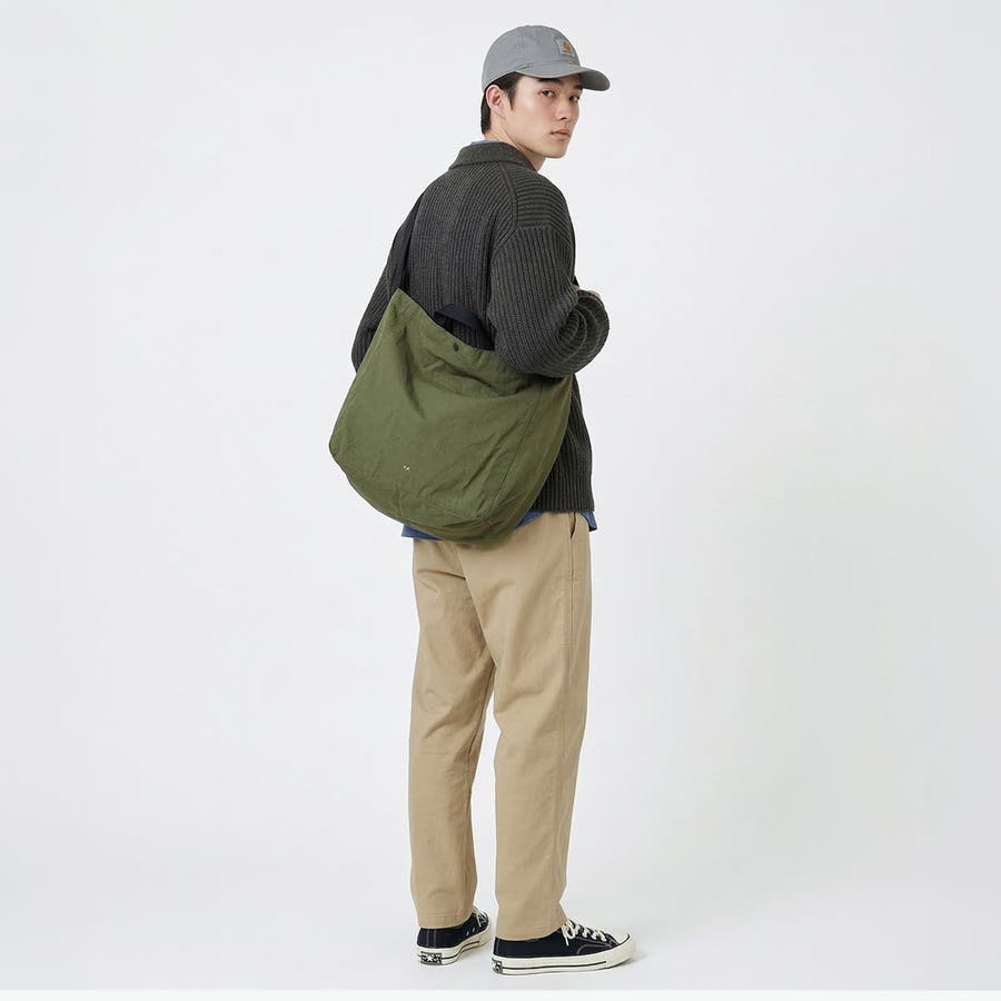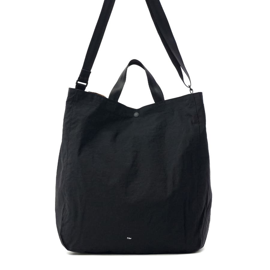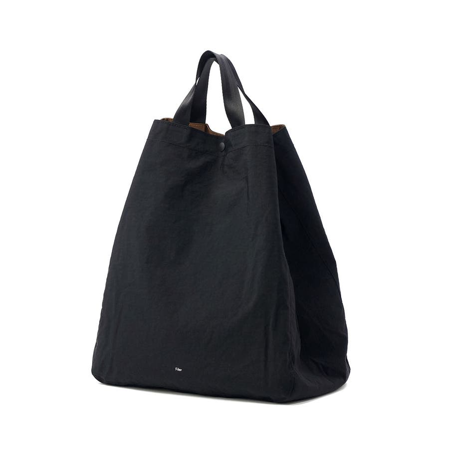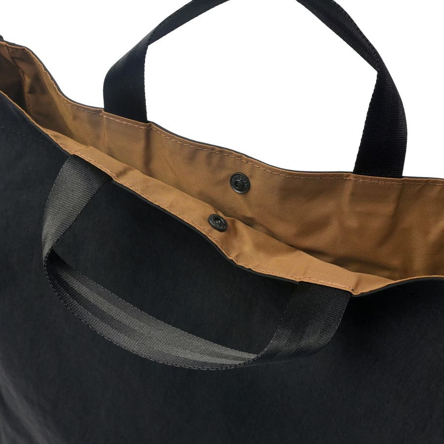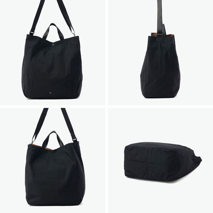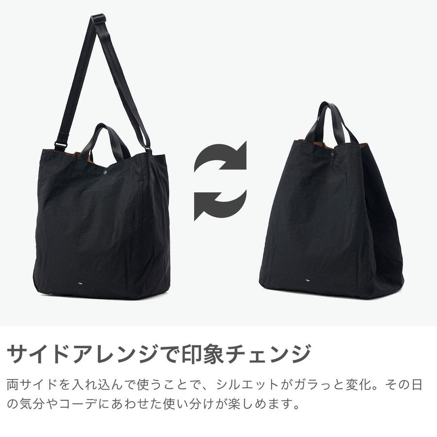 軽くシワ加工を施したナイロンタッサーを使用した2WAYトート。驚くほどの軽さと身体に寄り添うフィット感が、日常の移動を軽やかに変えてくれます。両サイドを入れ込むことでシルエットがガラッと変わり、一つのバッグで異なる表情を楽しめるのがポイント。撥水加工も施されているため、多少の雨でも安心してお使いいただけます。ユニセックスなデザインでコーデに合わせやすく、一つ持っていると凄く便利なアイテムです。