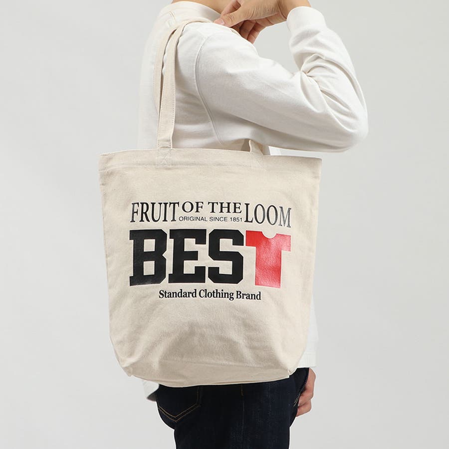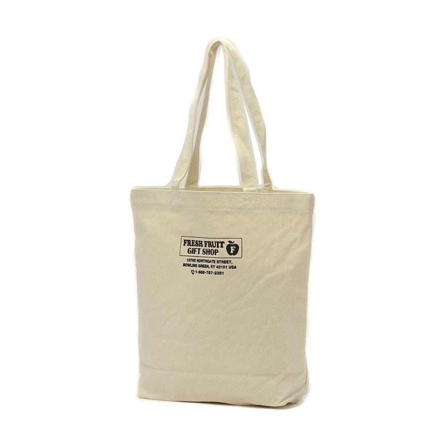 架空の小さなお土産店『FRESH FRUIT GIFT SHOP』。オールドアメリカンな店構えのこのショップでは、ここでしか買えないFRUIT OF THE LOOMとの限定コラボ商品が一番人気とのこと。そんなお店があったら、と想像しながら作ったのが、この記念品のようなトートです。背面にはショップロゴが入っています。