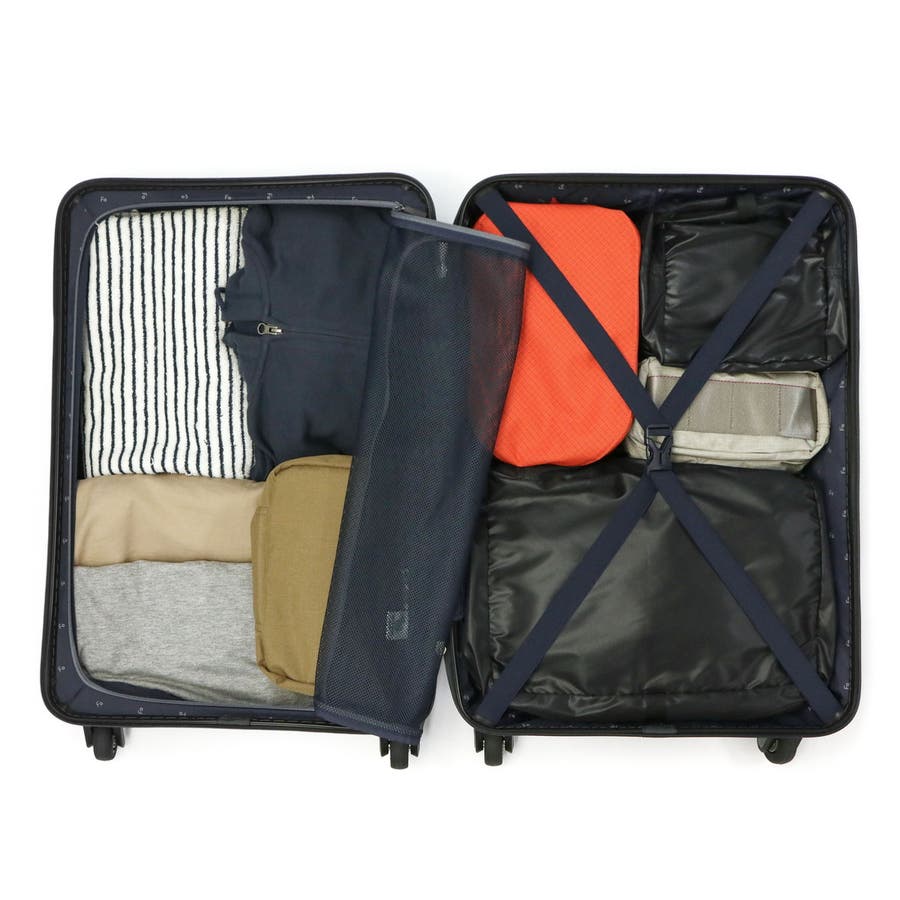 メインルームは、3~5泊程度の荷物が収まる頼もしい収納力。メッシュ収納とクロスベルトが付いたオープンルームに加え、小物を管理できるポケットが1つ付いたシンプルかつ使い勝手の良い設計の為、小物類の整理整頓をしながらザクザク荷物を収納できます。また、タイヤが消耗した時は、別売りの交換キットを使うと、思い出のケースとして永くお使いいただけます。