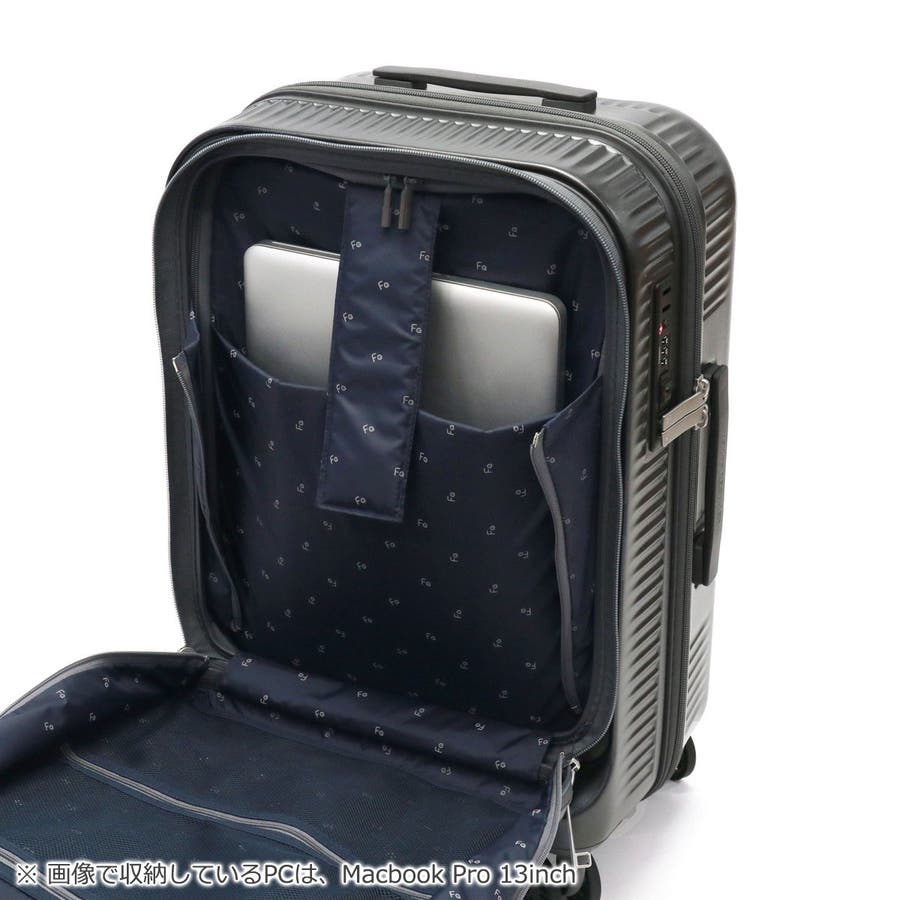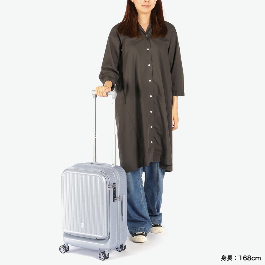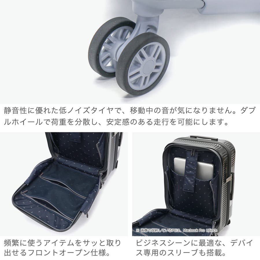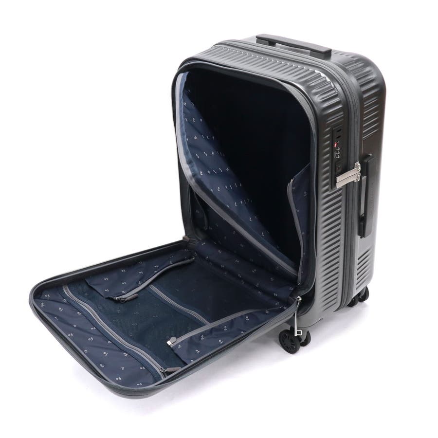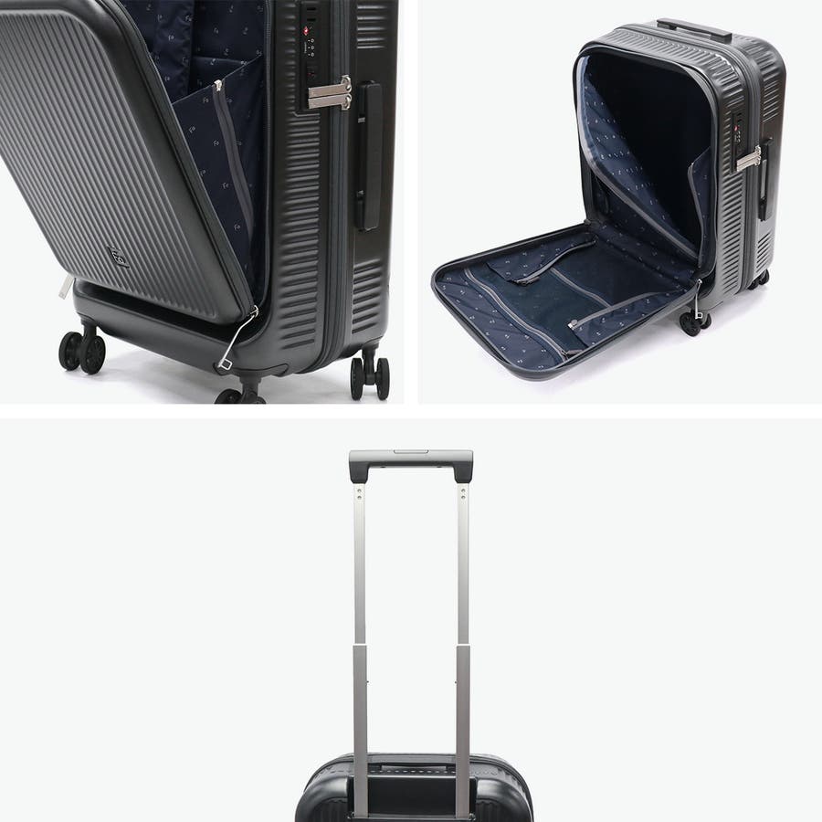 時代を超えて愛されるエレガンスさを込めたスーツケース。丸みを帯びたフォルムが上品さと愛らしさの絶妙なバランスを生み出し、持つ人のスタイルにやさしく寄り添います。メイン収納部を開かなくても荷物の取り出しがスムーズに行えるフロントオープン式を採用。異動時に必要な荷物の収納にも最適です。PC収納部も備えており、ビジネスシーンでの使用を想定した嬉しい作りになっています。