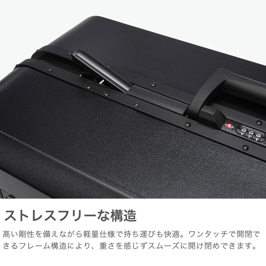 フリクエンター史上、最も軽さに特化したシリーズ『LIEVE/リエーヴェ』から、フレーム型が登場。こちらは、出張や海外旅行にも便利な65L容量。特殊構造の静音タイヤはそのままに、ワンタッチでスムーズに開閉できる構造と、高い剛性を備えた軽量ボディが魅力。快適さと安心感を両立した、旅の新定番です。