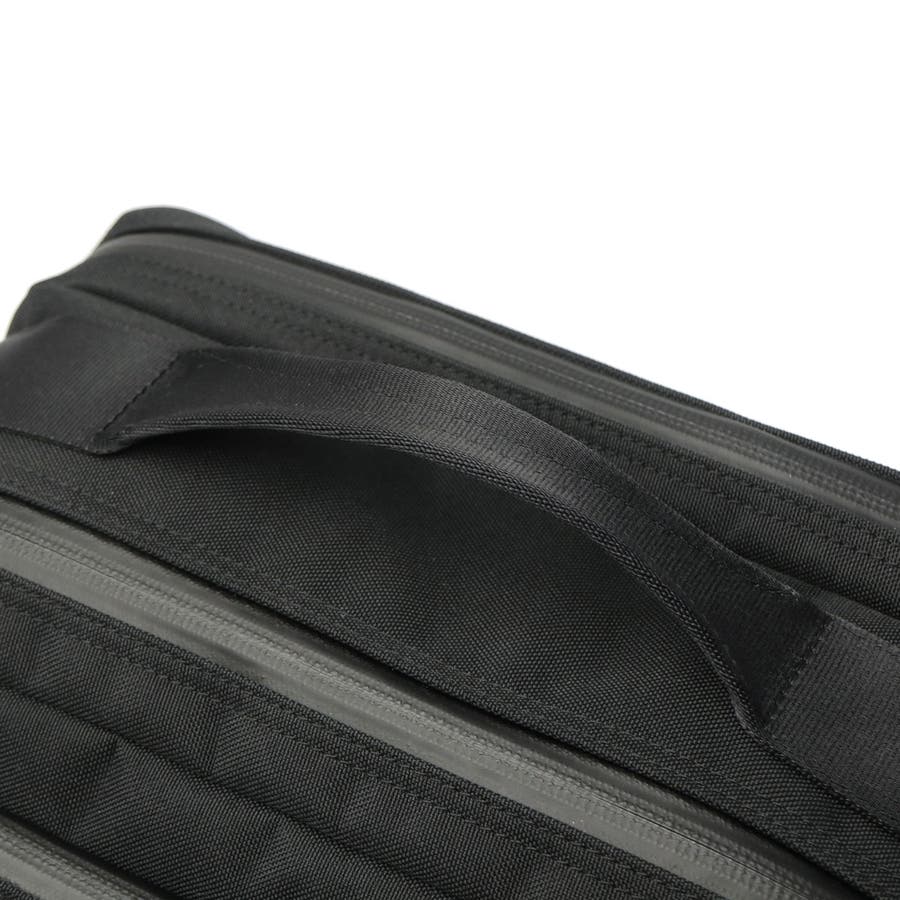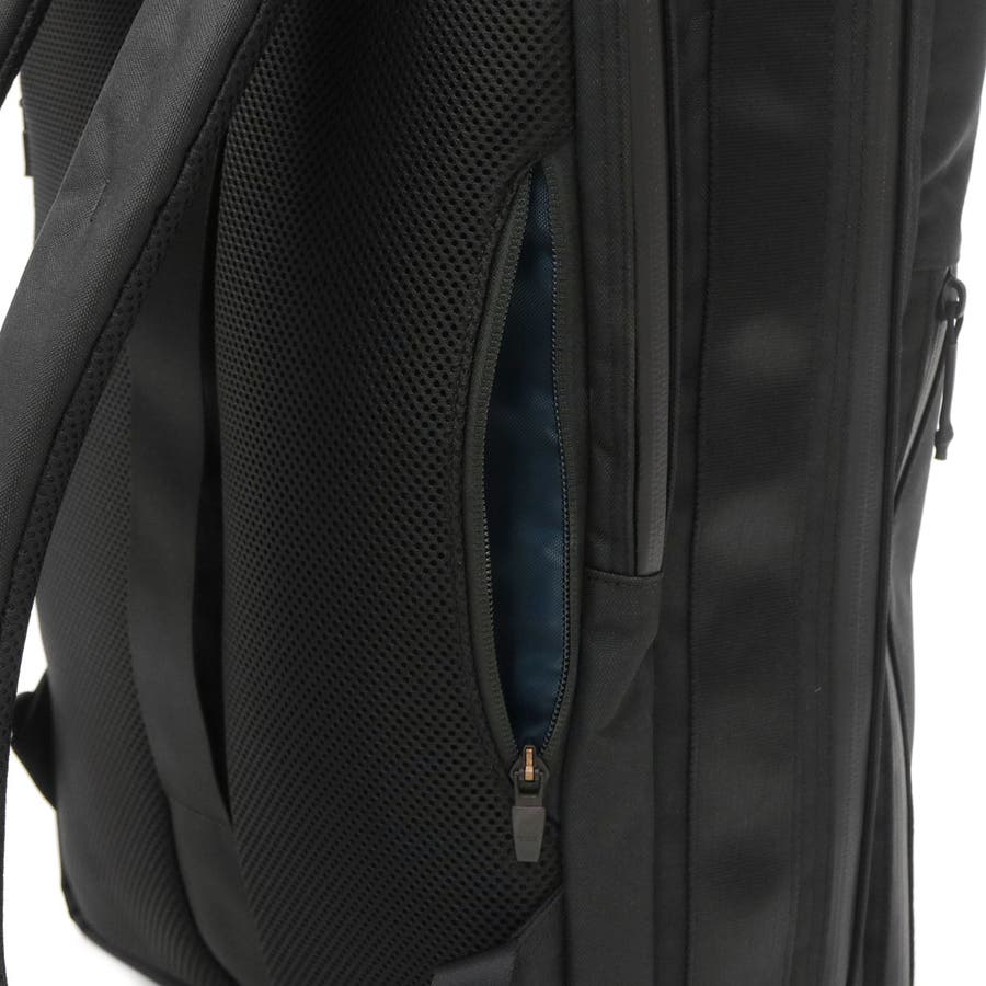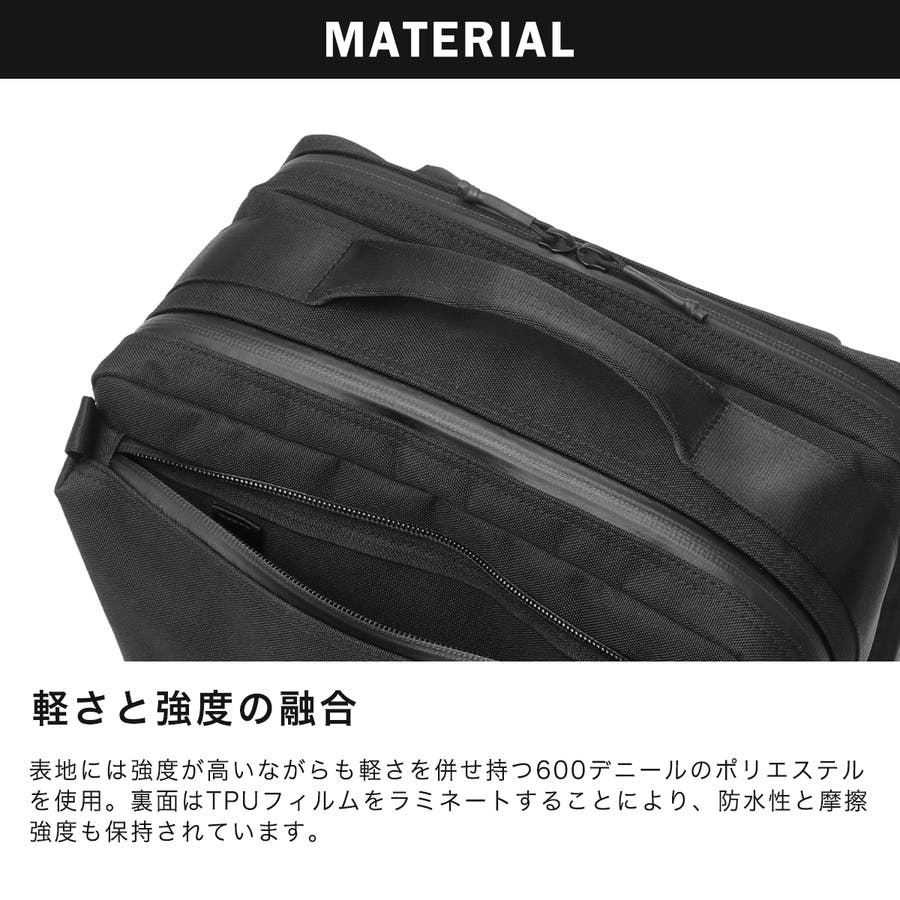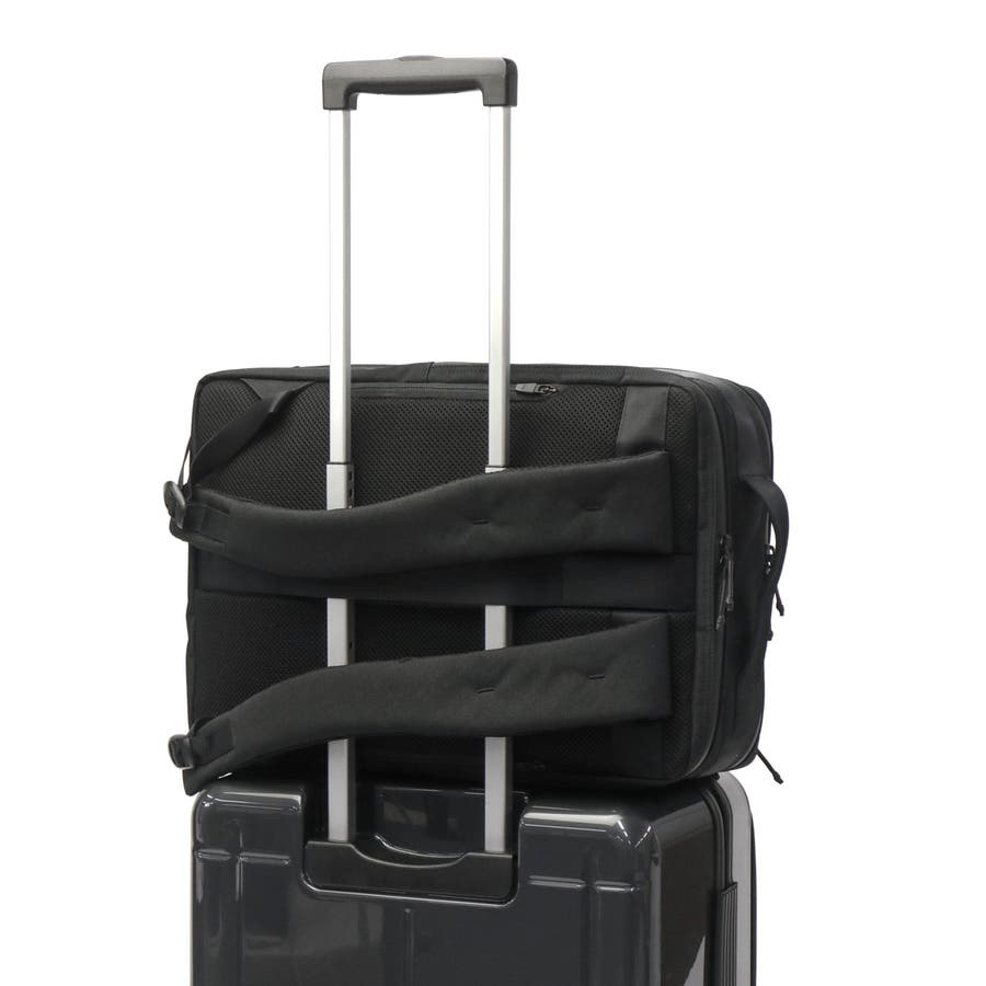 収納スペースはB4サイズ対応で、書類やノートPCなどが収納しやすいスクエア型。荷物の仕分けに便利な2層構造になっています。伸縮性と強度のあるパワーメッシュを使用したポケットを内蔵しており、厚みのある小物の収納にも便利です。背面の収納スペースにはPC収納も備えており、ビジネスから普段使いまで幅広く活躍してくれます。