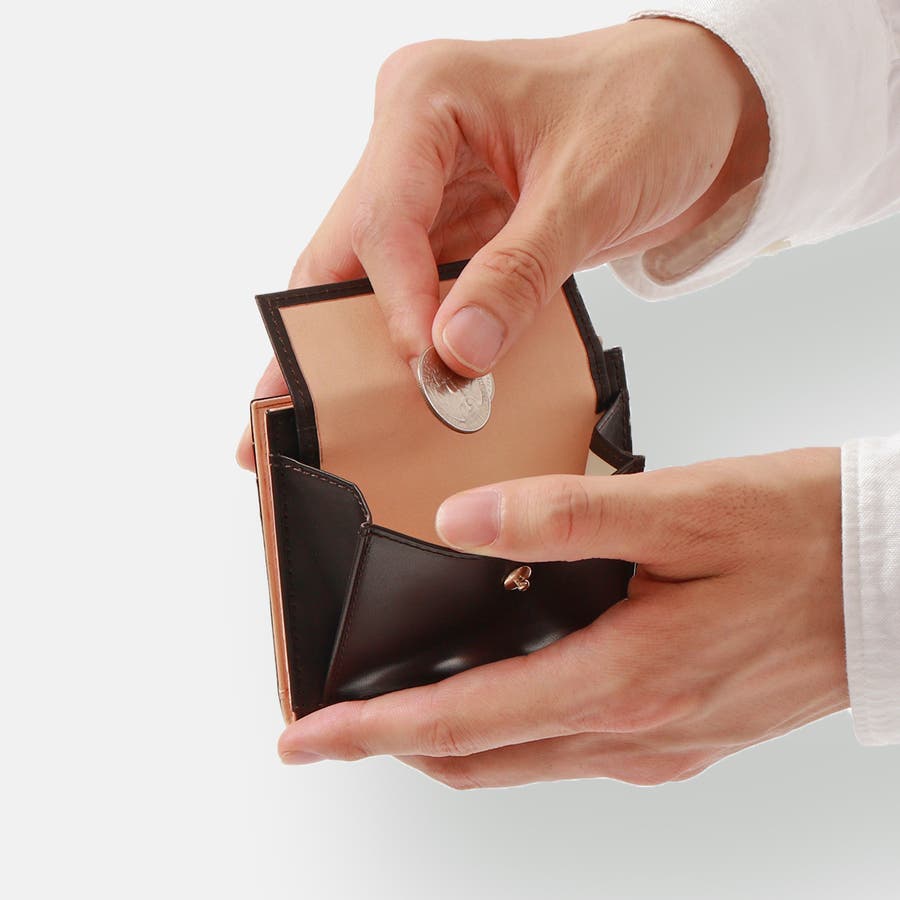2種類の革を贅沢に使用したワンランク上の佇まいが魅力の『G1990 Raffine ラフィネ』の二つ折り財布。コンパクトながらもの必要な収納機能はしっかり備えられています。表側にはキメの細かいしなやかで上品な質感のフレンチキップレザーを使用し、内装には経年変化を楽しめるヌメ革を使用しています。